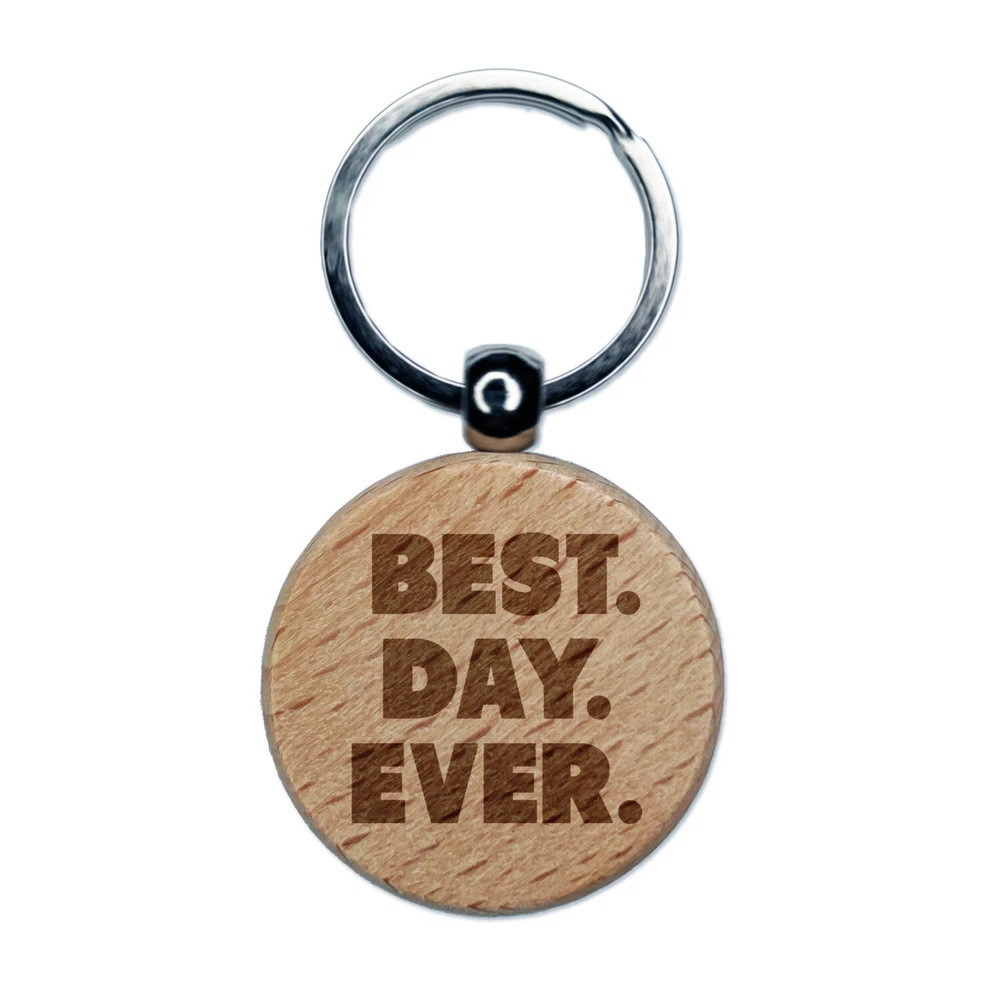 Dije llavero redondo de madera grabado en negrita Best Day Ever