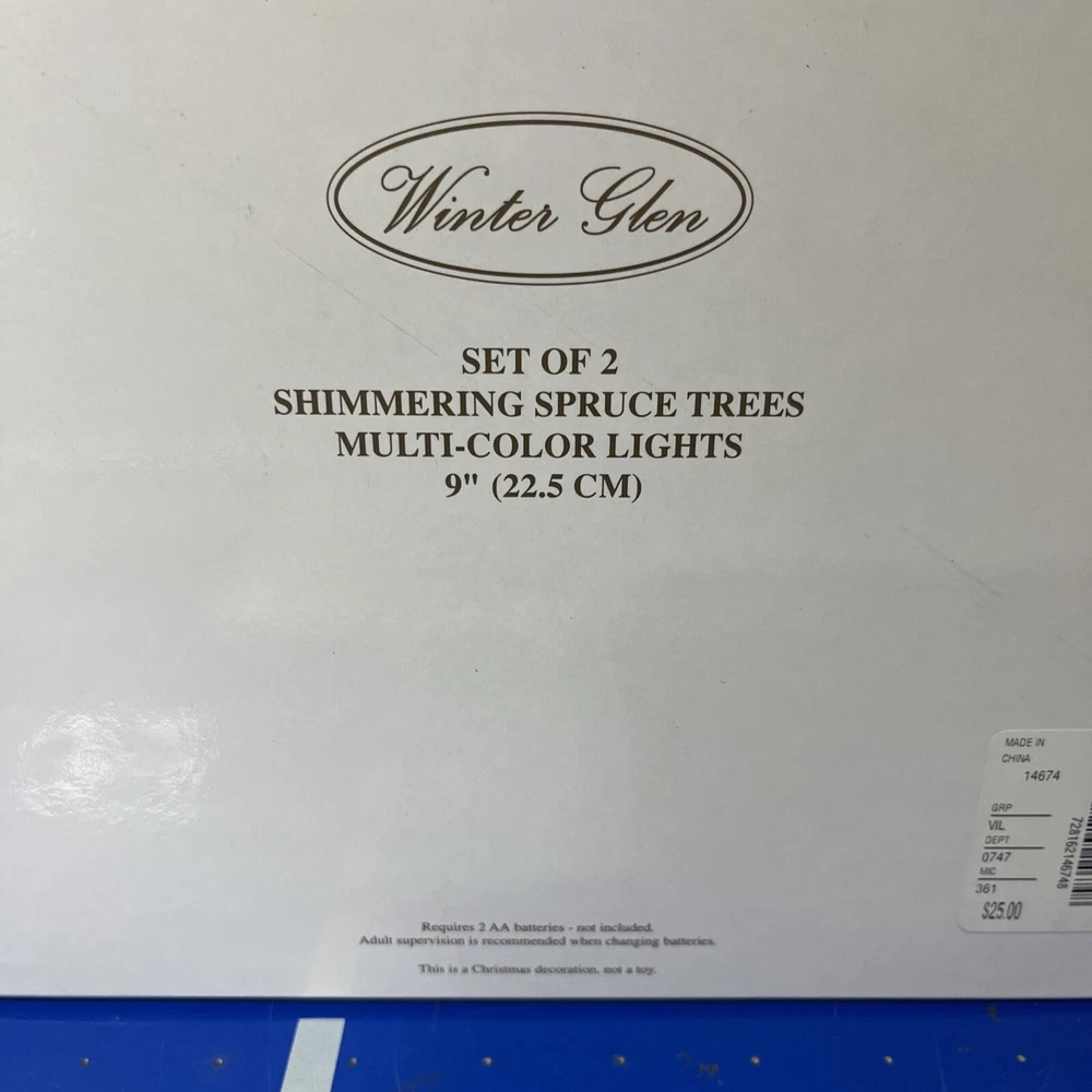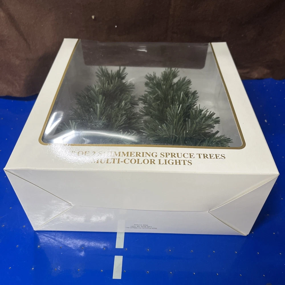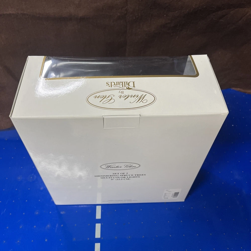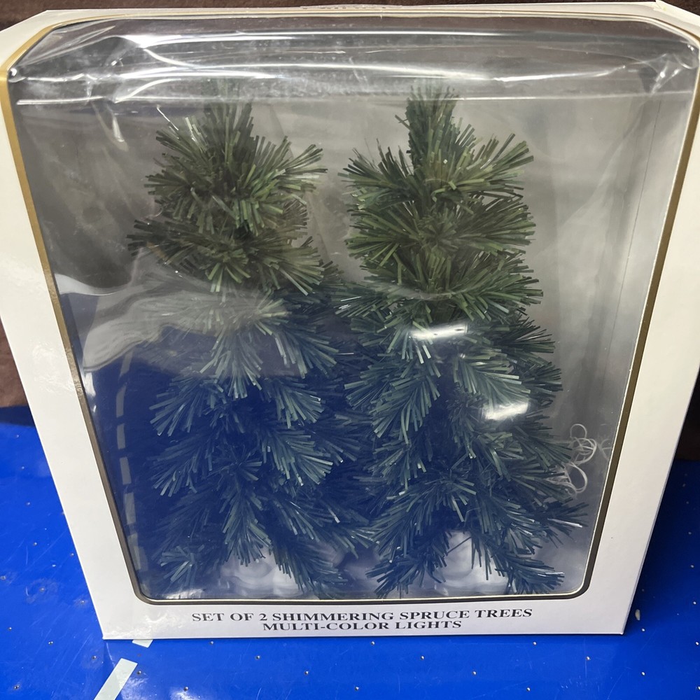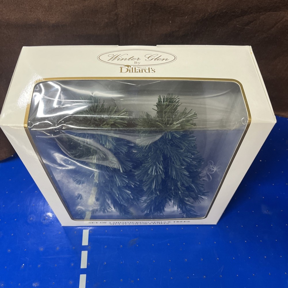 The Winter Glen by Dillard's Christmas Set of 2 Shimmering Spruce Trees Multi Color is a festive addition to any holiday display. Made of ceramic and porcelain, these lighted Christmas trees from the Lemax brand feature a shimmering spruce design that adds a touch of magic to your winter village scene. Perfect for collectors or anyone looking to enhance their seasonal decor, these trees are sure to bring a Christmas spirit to your home during the holiday season.