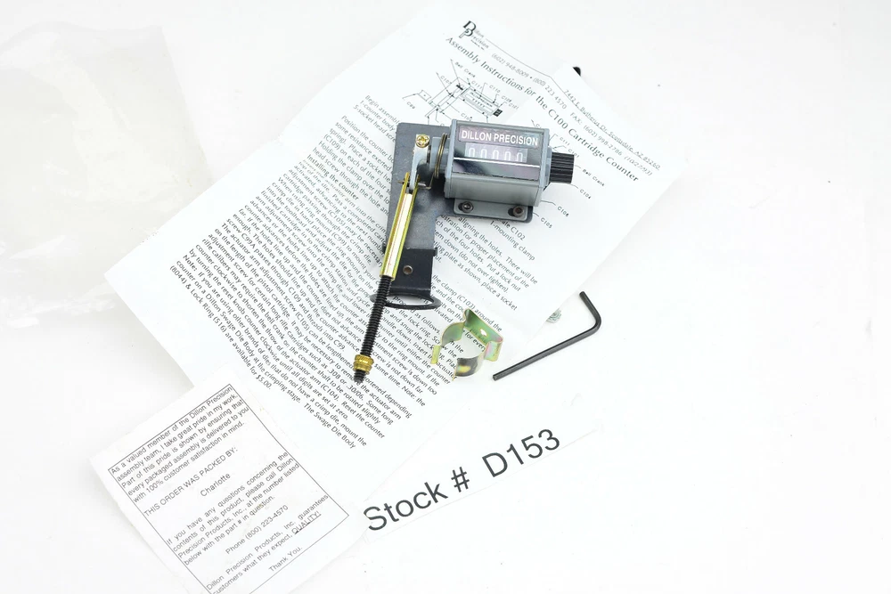 D etails: Dillon Precision Manual Bullet Counter for Dillon Press What you see is what you'll get no more or no less, so if it isn't shown it is NOT included. C ondition: New old stock. Might have some very light wear just from being in storage. I would rate an 9+ out of 10 on condition. Stock # D153 (Location:Rack5) Terms and Conditions: By bidding and or buying this item your agreeing that you are a legal US citizen that resides in the United States and can legally own, purchase, receive, have possession and use this item where you live or wherever you use item. By bidding and or buying you also agree to not export or help with exporting outside the United States whether it be directly or indirectly. You agree to abide by all governing laws and intend to only use this item for sporting purposes only with no intentions of any kind or form of bodily harm to yourself or anyone else. In no event shall we, our officers, directors, employees and/or other representatives be liable for any damages of any kind, including without limitation, direct, indirect, compensatory, special, consequential, punitive, and/or incidental damages related to the products sold. All firearms parts should be inspected and installed by a competent and licensed gunsmith. Any provision of these Terms of Use shall not affect the validity and enforceability of any legal and enforceable provisions of these terms and policies. We have taken reasonable efforts to ensure that the information contained is accurate; however, all information is provided “as is” without any express or implied warranties, including but not limited to the implied warranties of merchantability, fitness for a particular purpose or non-infringement. In addition, by using the information from the listing, you understand and agree that all firearms are potentially dangerous if handled improperly and can pose risks and hazards to yourself and others, which may result in property damage, serious injury or death. Any advice, guidance or other information provided cannot completely anticipate your situation, and shall not create any warranty not expressly made herein, regardless of any omission or inaccuracy of information contained in our listings. You agree to defend, indemnify and hold the seller harmless against all third party claims, actions or demands, liabilities, and settlements, including, without limitation, reasonable attorney's fees, arising in connection with your use of this listing or resulting from, or alleged to result from, your use of the listings or your violation of these terms and policies. All gun parts should be installed by a qualified and licensed gunsmith and any part should only be used for the intended weapon that the part was designed to fit. Buyer agrees that any gun part will be installed by a qualified, competent and licensed gunsmith. By bidding and or buying you are agreeing to all these terms and conditions and have fully read all of the terms and condition set forth and agree to all terms and conditions.