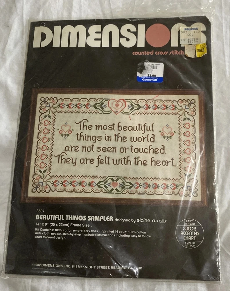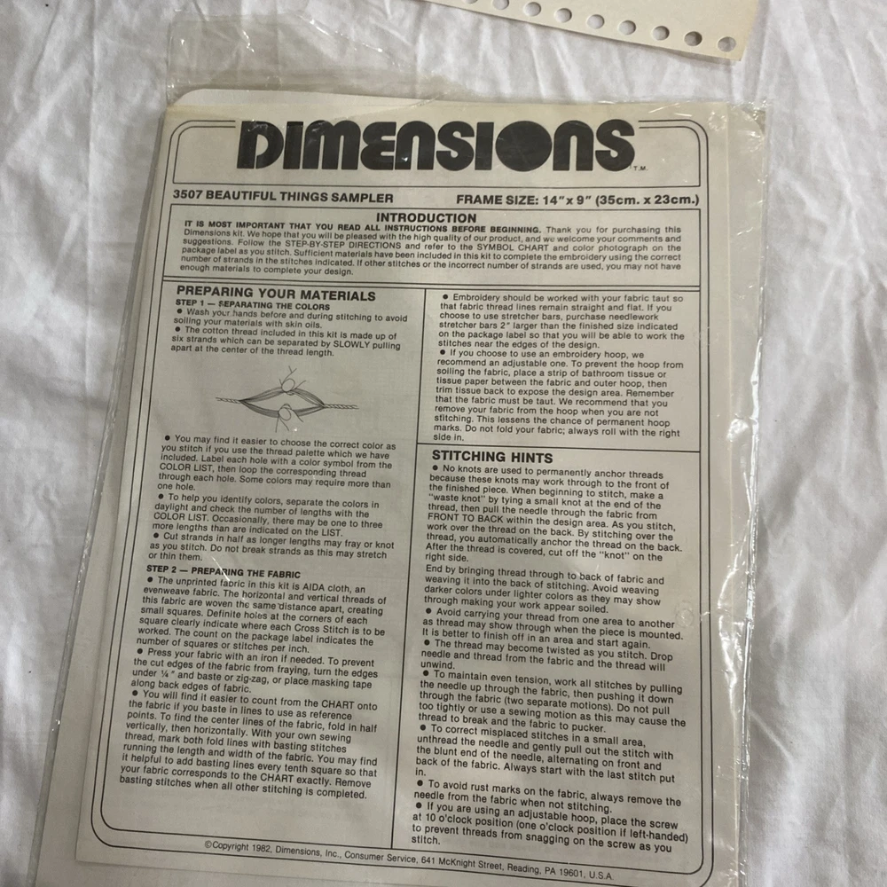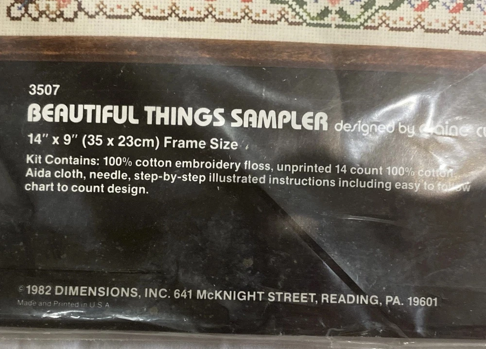Dimensions Counted Cross Stitch "Beautiful Things Sampler" #3507 Opened Complete. Package opened but everything is in the package. Shipped usps ground mail. From a dog and kid friendly home. Please don’t hesitate to contact me with any questions or concerns