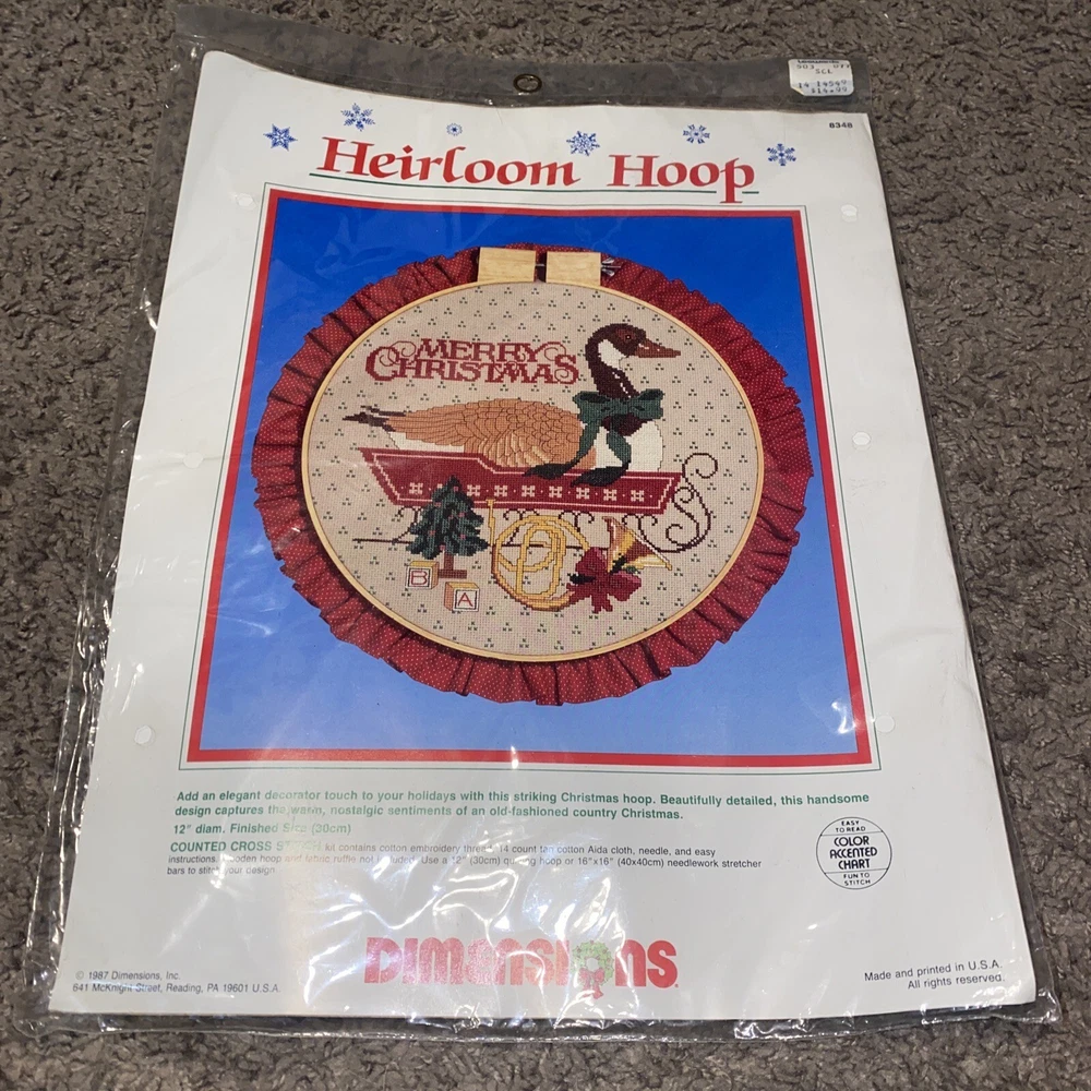 Dimensions Counted Cross Stitch Christmas Framing Hoop 12" Heirloom Goose 1987