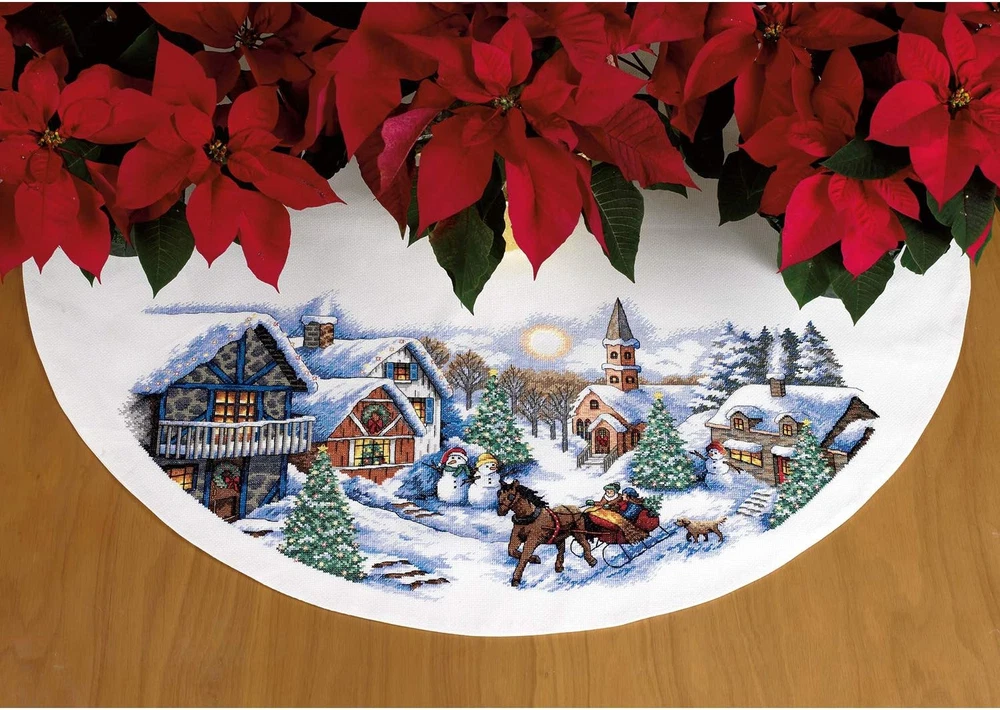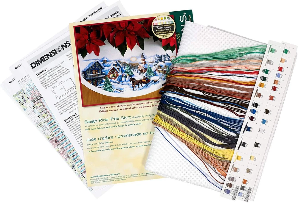 Dimensions Counted Cross Stitch Tree Skirt Kit, Sleigh Ride, 11 multi-colored Description Stitch a unique tree skirt or tablecloth with the Dimensions Counted Cross Stitch Tree Skirt Kit! This lovely tree skirt takes you on a nostalgic outing through a quaint village on a crisp winter's day. Includes presorted cotton thread, 11 count white Aida, needle, and easy to follow instructions. Tree Skirt measures 45'' diameter. Features: Tree skirt kit includes presorted cotton thread, 11 count white Aida, needle, and easy to follow instructions. Completed Sleigh Ride Christmas tree skirt measures 45'' D. This lovely tree skirt features a winter wonderland village complete with horses and trees! This DIY tree skirt is a great Christmas craft for experienced cross stitchers! Use your completed Sleigh Ride cross stitch craft as a tree skirt or table decoration! Product Details: Brand: Dimensions Age Range (Description): Adult Color: multi-colored Theme: Winter,Christmas,Tree Cartoon Character: Winter Item dimensions L x W x H: 45 x 0.1 x 45 inches Material: Cotton Seasons: Winter Included Components: presorted cotton thread, 11 count white Aida, needle, easy to follow instructions Item Weight: 0.59 Kilograms Number of Pieces: 1 Style: Unique Model Name: PN-0174000 Special Feature: Counted Cross Stitch Tree Skirt Kit Art Craft Kit Type: Cross Stitch Tree Skirt Manufacturer: EKS Product Dimensions: 45 x 0.1 x 45 inches Item model number: 70-08830 Is Discontinued By Manufacturer: No Item Weight: 1.29 pounds Department: cross stitch kit Country of Origin: China Handling We will ship all orders within 3 business day of payment. Delivery We take pride in offering fast and reliable delivery for your orders! We are committed to getting your products to you as quickly as possible. Generally, we would like to inform you that all orders will be delivered to you within 1-3 business days after processing.However, in some cases, delivery times may vary depending on the buyer's location. Especially in remote or rural areas, the expected delivery time may be extended. In such situations, we do our best to ensure that your order reaches you as quickly as possible.If there are any delays, we will be happy to contact you to explain the situation. Our goal is to enhance your satisfaction with our fast delivery times. We work diligently to ensure that your order arrives safely.Trust us and enjoy our speedy delivery! Return Policy All items qualify for returns within 30 days of receipt. Buyer is responsible for return shipping on any item that is not damaged. Feedback We take our reputation seriously, we buy and sell online, so we understand the value of trust. If you are unsatisfied with your order, please contact us and we will work with you to resolve it to your satisfaction.