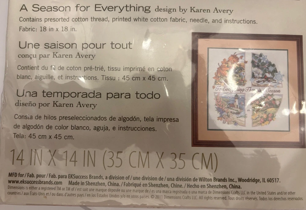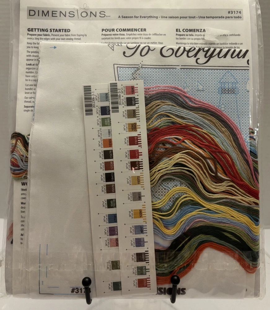 This is a cross stitch kit from Dimensions, featuring a seasonal theme of fall, winter, and spring. The kit includes a 14x14 Bucilla Counted Cross Stitch Kit Santa on the Rooftop 83086 Sealed 14" x 11" inch picture frame and all necessary materials to complete the cross stitch. The brand is Dimensions and the model number is 3174. This kit is perfect for those who enjoy needlecrafts and want to create a beautiful piece of art for their home.