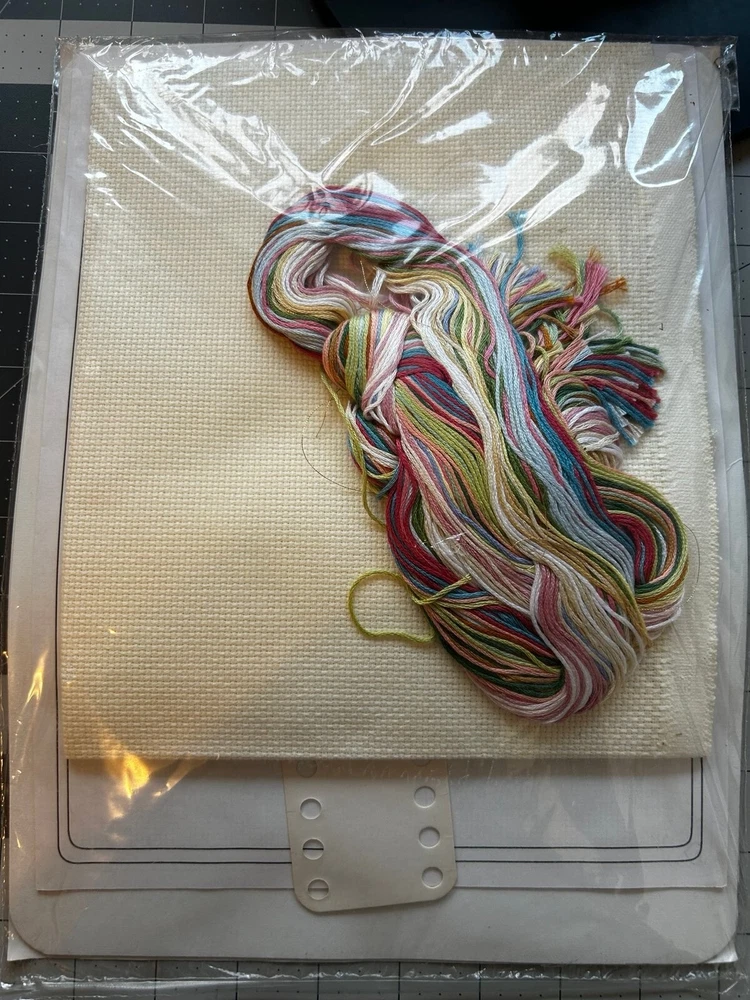 Dimensions cross stitch kit, Our Wedding, Betty Whiteaker, kit includes cotton embroidery thread, gold metallic thread, 14 count ivory Aida, thread palette, needle and instructions.