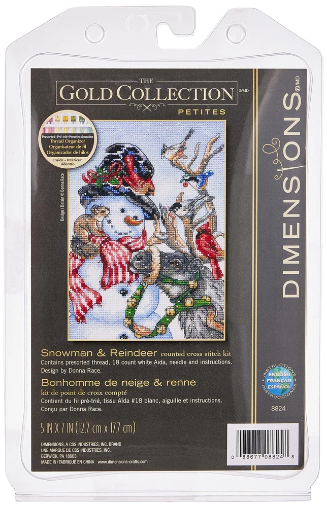 Stitch a festive piece of holiday wall art with the Dimensions Gold Collection Snowman and Reindeer Counted Cross Stitch Kit! This advanced cross stitch kit features a holly snowman, a happy reindeer, and some of their woodland friends, and uses full and half stitches to create stunning detail specifically designed for experienced needlecrafters. Includes 18 count white Aida, cotton thread, needle, and easy instructions. Completed cross stitch measures 5'' x 7''. Snowman and Reindeer advanced counted cross stitch kit includes 18 count white Aida, cotton thread, needle ,and instructions. Completed Snowman and Reindeer cross stitch kit measures 5'' x 7''. This advanced cross stitch pattern features a jolly snowman, a happy reindeer, and some of their woodland friends! Specifically designed for advanced needlecrafters, this adorable snowman Christmas cross stitch pattern uses full and half stitches to create beautiful details. Frame and hang your completed Snowman and Reindeer cross stitch for a festive piece of Christmas wall art!