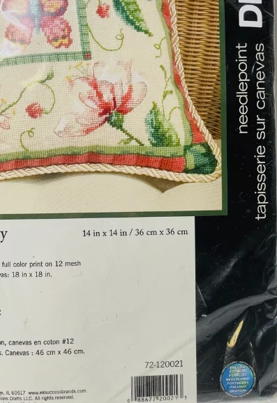 HomeDimensions Honeysuckle Butterfly pillow needlepoint kit 72-120021 14” x 14”