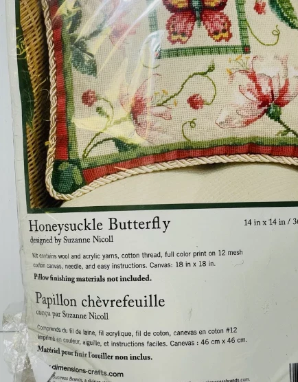 Dimensions Honeysuckle Butterfly pillow needlepoint kit 72-120021 14” x 14”