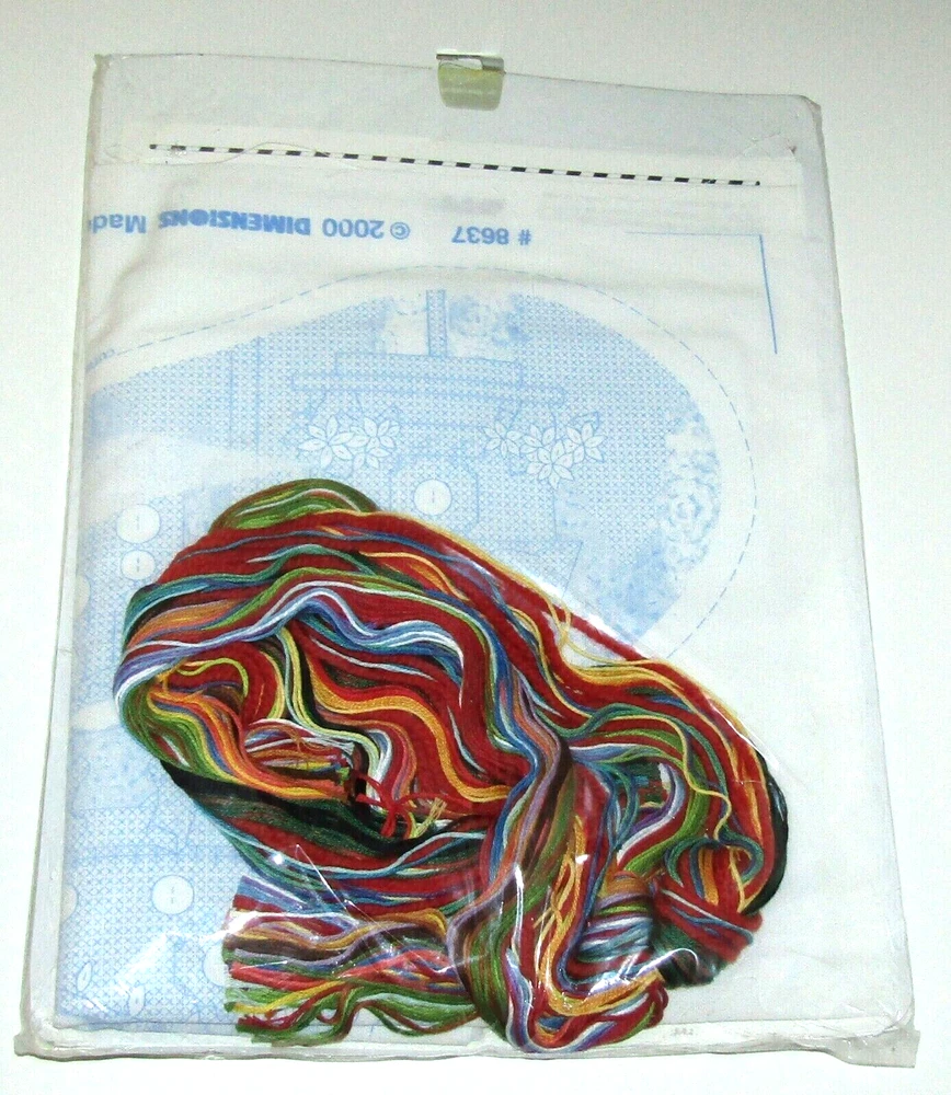 Dimensions Seasonal Birdhouse Stocking Stamped Cross Stitch Kit Kit includes: cotton thread, wool yarn, printed white sailcloth, felt, needle, and easy instructions with an alphabet Fabric: 13" x 20" Approximately 16" long when completed New