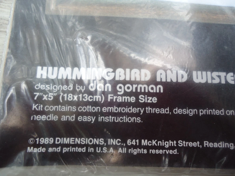 Dimensions Stamped Cross Stitch 6575 Hummingbird and Wisteria New Unopened 7 x 5
