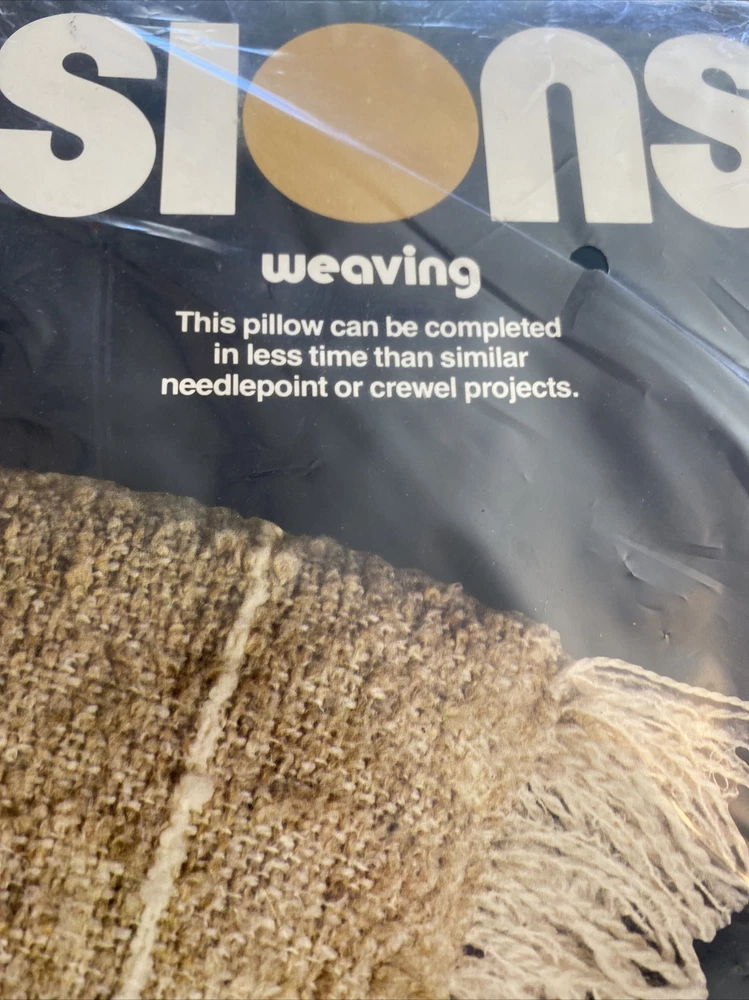 New in the package Vintage 1977 Dimensions Weaving Kit 5002 Camel & Brown fringed pillow 13" x 15"