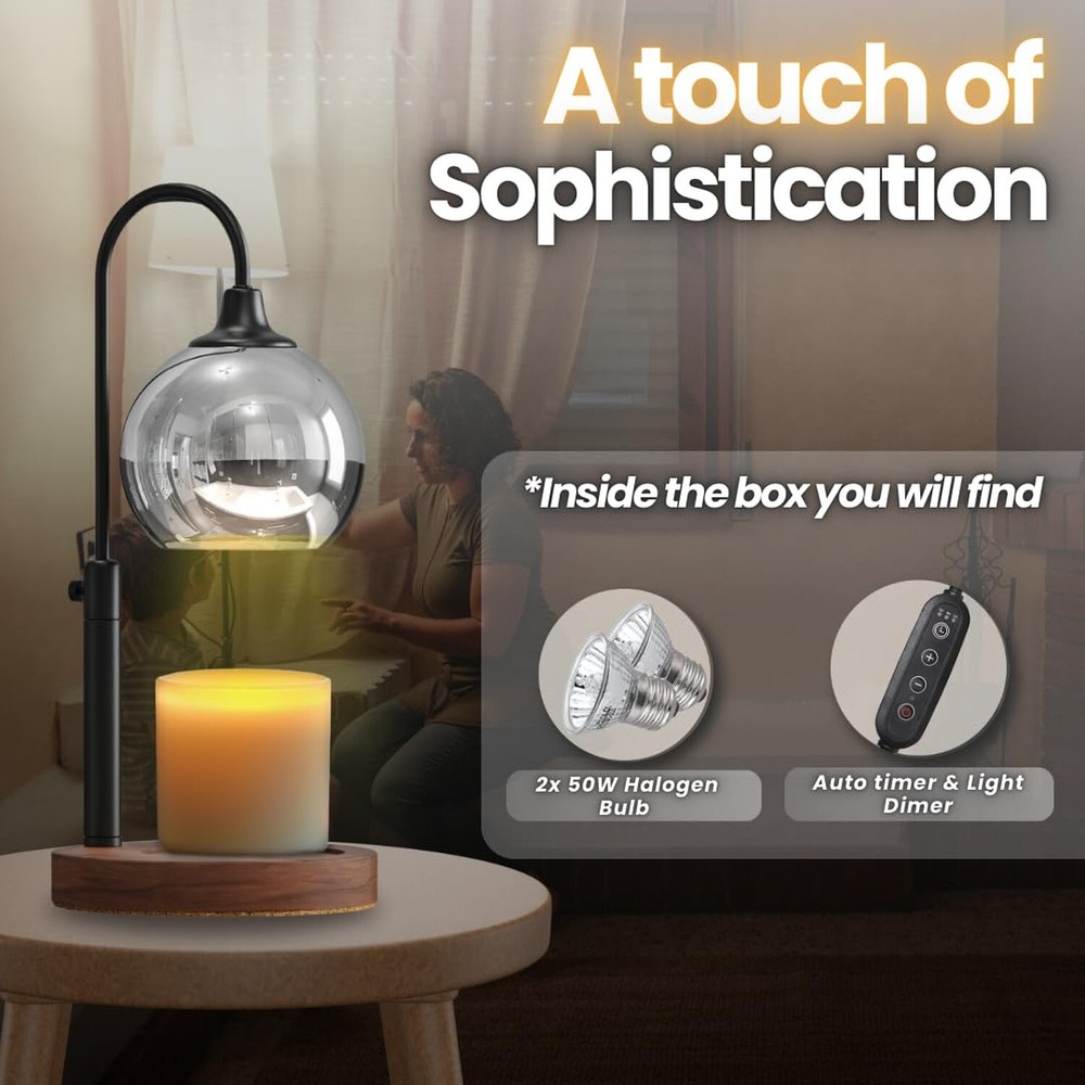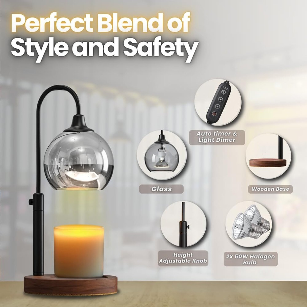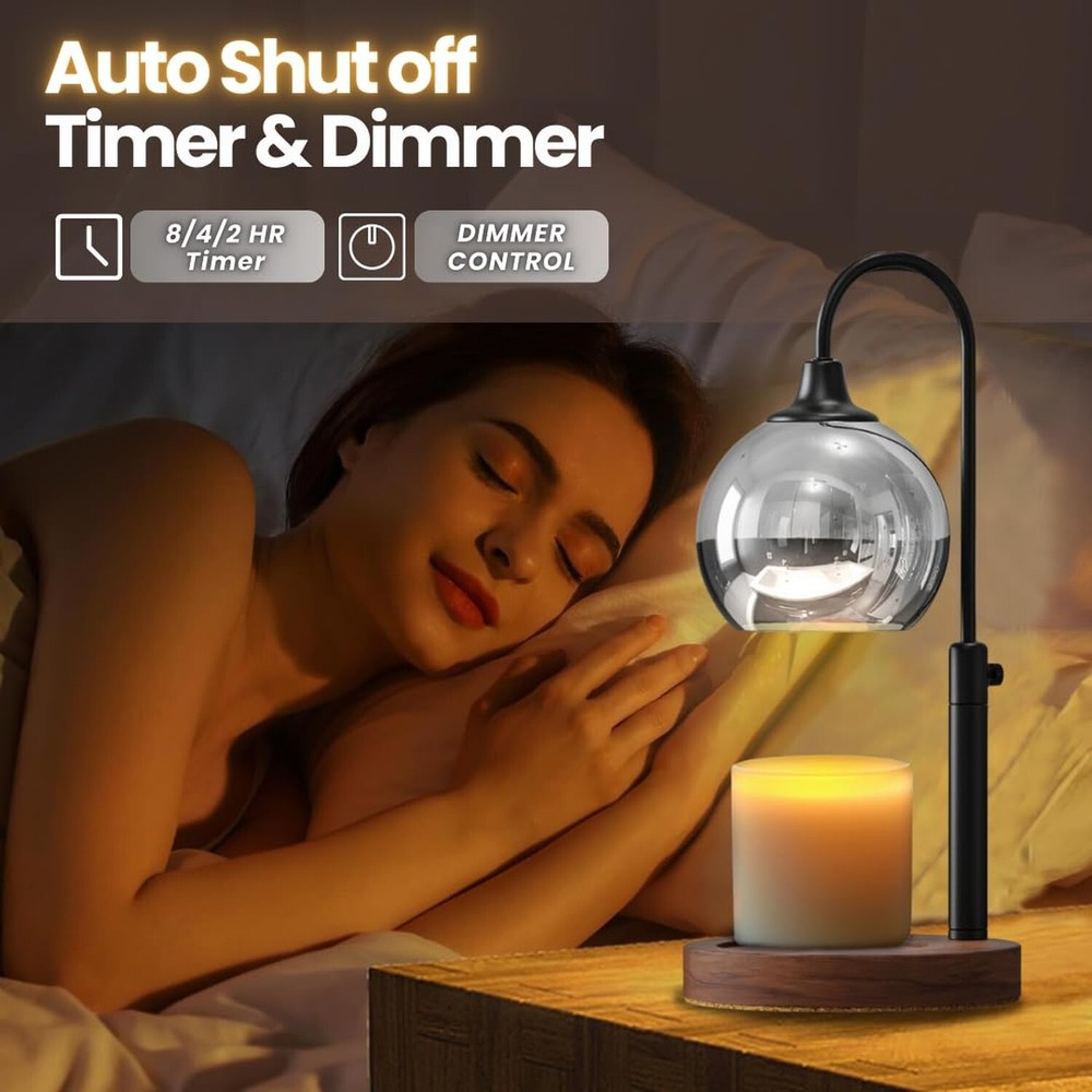 Candle Warmer Lamp Dimmable with Timer - Adjustable Height Electric Wax Melt Warmer for Candle Jars Room Decor - Special Occasions Product Details Base Material: Metal Product Dimensions: 1"D x 1"W x 1"H Item Weight: 1.7 Pounds Lamp Type: Table Lamp Shade Color: Black Product Dimensions : 1 x 1 x 1 inches; 1.67 Pounds Item model number : XX2405 Date First Available : April 20, 2024 Manufacturer : El Moonlight Country of Origin : China Customer Reviews: 4.9 4.9 out of 5 stars 28 ratings Base Material: Metal Product Dimensions: 1"D x 1"W x 1"H Item Weight: 1.7 Pounds Lamp Type: Table Lamp Shade Color: Black Shade Material: Stainless Steel Switch Type: Dimmer Style: Modern Brand: El Moonlight Color: Black Special Feature: Corded Light Source Type: Halogen Material: Iron Room Type: Bedroom Recommended Uses For Product: Decoration Power Source: Corded Electric Number of Light Sources: 1 Connectivity Technology: USB Included Components: Power Cable Mounting Type: Tabletop Number of Items: 1 Lighting Method: Dimmer Control Method: Touch Indoor/Outdoor Usage: Indoor Water Resistance Level: Not Water Resistant Number of Pieces: 1 Connectivity Protocol: Homeplug Is Cordless?: No UPC: 198168726440 Manufacturer: El Moonlight Part Number: El0002 Item Weight: 1.67 pounds Country of Origin: China Item model number: XX2405 Special Features: Corded Batteries Included?: No Batteries Required?: No Date First Available: April 20, 2024 FLAMELESS & SAFE FRAGRANCE DIFFUSION: Enjoy safe, flameless fragrance with our electric candle warmer. It melts wax, jar candles, and cubes, creating a cozy ambiance without open flames. Perfect for vintage home decor and home accents. DIMMABLE LIGHT & EXTENDED CANDLE LIFE: Set the perfect ambiance with adjustable dimmable light. Gentle, consistent heat melts wax and candles evenly, extending their life while enhancing your room decor. TIMER FUNCTION FOR CONVENIENCE: Our built-in timer allows you to set a shut-off time while you enjoy your favorite scents. Whether you use it as a bedroom nightlight, in your office, or as a functional home accent, it makes a great gift for moms, friends or your loved once on Christmas list. VINTAGE HOME DECOR: With its chic bronze finish, Our candle warmer blends seamlessly into modern or classic decor, adding a stylish touch to any room. PERFECT GIFTS FOR WOMEN: Ideal for women, moms, or young girls, this candle warmer makes the perfect gift for birthdays, Christmas, or housewarmings.