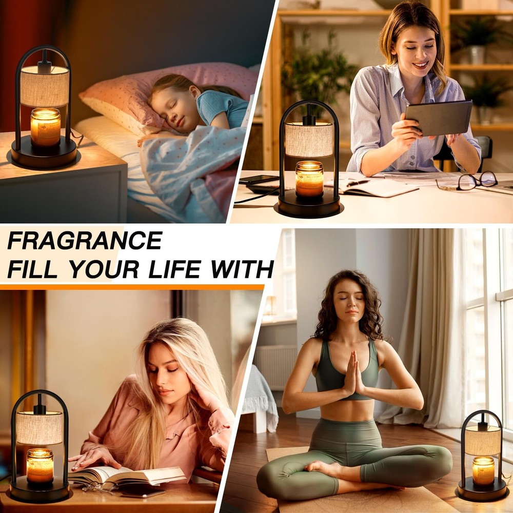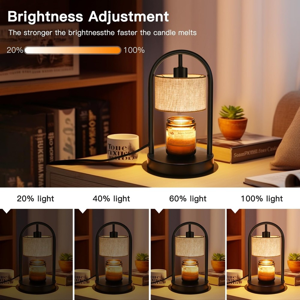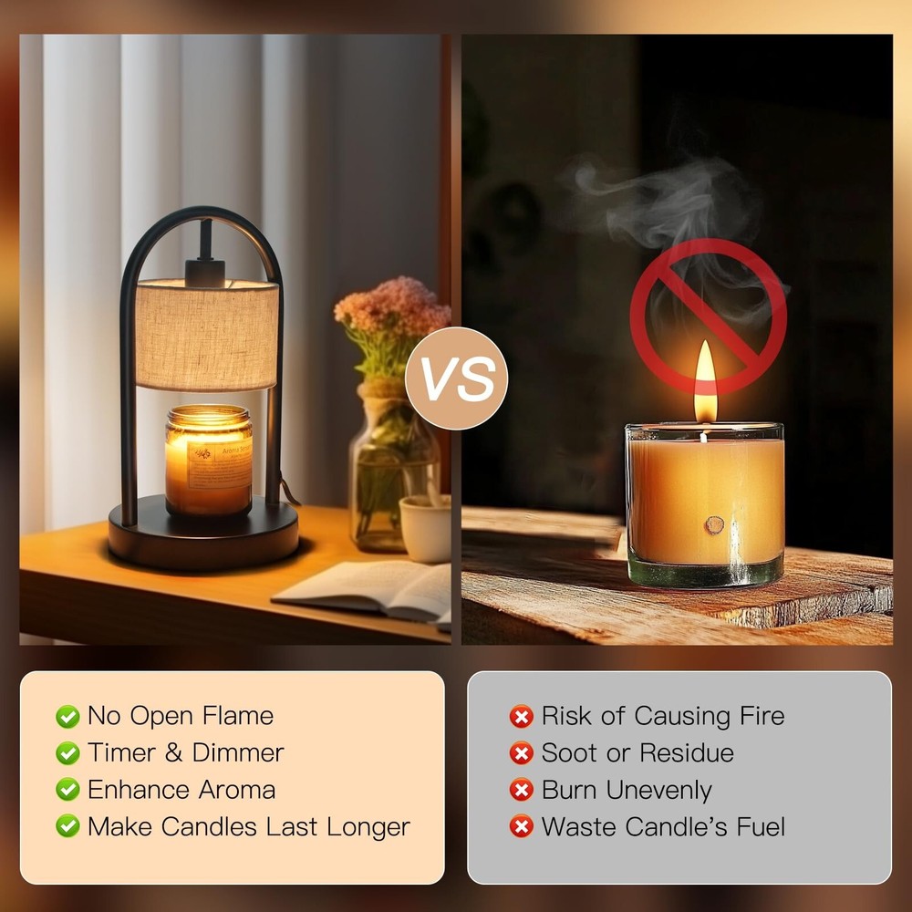Candle Warmer Lamp with Timer, Electric Candle Warmer Light Dimmable, Wax Melts Warmer for Candle Jars, Mother's Day Gifts for Mom, New Home Gifi Bedroom Decor (2 Bulbs Included) Product Details Finish Type: Painted Base Material: Metal Bulb Base: GU10 Product Dimensions: 6.4"D x 6.4"W x 11"H Lamp Type: Candle Warmer Lamp Product Dimensions : 6.4 x 6.4 x 11 inches; 2.16 Pounds Item model number : RND-50-001 Date First Available : July 9, 2024 Manufacturer : Omnikerlight Country of Origin : China Customer Reviews: 4.3 4.3 out of 5 stars 29 ratings Finish Type: Painted Base Material: Metal Bulb Base: GU10 Product Dimensions: 6.4"D x 6.4"W x 11"H Lamp Type: Candle Warmer Lamp Shade Color: Beige Shade Material: Linen Switch Type: Remote Style: Modern Brand: Omnikerlight Color: Beige Special Feature: Energy Efficient, Dimmable,Timer Light Source Type: Halogen Material: Linen, Metal Room Type: Bedroom, Living Room, Dining Room Recommended Uses For Product: Decoration Power Source: Corded Electric Shape: Round Number of Light Sources: 2 Included Components: 2 Bulbs, Timer Bulb Shape Size: G16 1/2 Mounting Type: Desktop Wattage: 50 watts Number of Items: 1 Lighting Method: Downlight Control Method: Remote Indoor/Outdoor Usage: Indoor Specific Uses For Product: Relaxation, Sleep Aid, Decoration Water Resistance Level: Not Water Resistant Installation Type: Countertop Voltage: 120 Volts Base Diameter: 6.3 Inches Is Cordless?: No Manufacturer: Omnikerlight Shade Height: 11 Inches Part Number: RND-50-001 Item Weight: 2.16 pounds Country of Origin: China Item model number: RND-50-001 Finish types: Painted Special Features: Energy Efficient, Dimmable,Timer Batteries Included?: No Batteries Required?: No Color Temperature: 3000 Kelvin Date First Available: July 9, 2024 Candle Warmer Lamp with Timer & DimmerYou can adjust the brightness to control the wax melting speed. Higher brightness melts wax faster, while lower brightness slows it down. Use the timer (2H/4H/8H) to automatically turn off the lamp. It includes two 50W GU10 halogen bulbs. Safer Candle WarmerOur candle wax warmer lamp is suitable for children's and pet families, no smoke or no open flame. It can always keep the candle jar flat and beautiful, prolong the candle use life. Compatible most size jar candles. Thoughtful Gifts An excellent choice for present to show your love to your families, lover, friends or fragrance lovers on Valentine's Day, Thanksgiving, Mother's Day, Christmas, New Year. Using our melting wax lamp can easily remove unpleasant smells such as pet urine and kitchen waste, refreshing the space. Universal & Economical Candle LampCandle warmer lamps help you save money. They offer longer-lasting fragrances compared to traditional candles. The wax melts slowly and consistently, providing a continuous scent release over a longer period. You can enjoy delightful aromas without constantly buying new candles or relighting them. Perfectly Designed Sleep LightElectric candle warmer lamp features an elegant and simple design. Its modern metal appearance complements various decoration styles, whether on the bedside table, living room, or desk. It can also be used as an aromatherapy lamp for yoga and meditation.