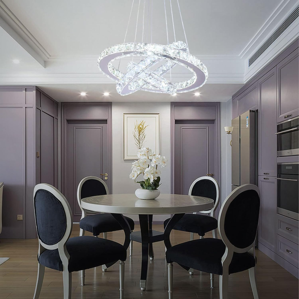 This stunning chandelier instantly elevates any room with its modern three-ring design and sparkling crystal accents. The dimmable LED lights create the perfect ambiance, while the remote control makes adjusting brightness effortless. The sleek stainless steel finish adds a luxurious touch, and the adjustable height ensures it fits beautifully in bedrooms or living rooms. Installation was straightforward, and the quality feels premium—definitely worth the investment for a stylish upgrade!