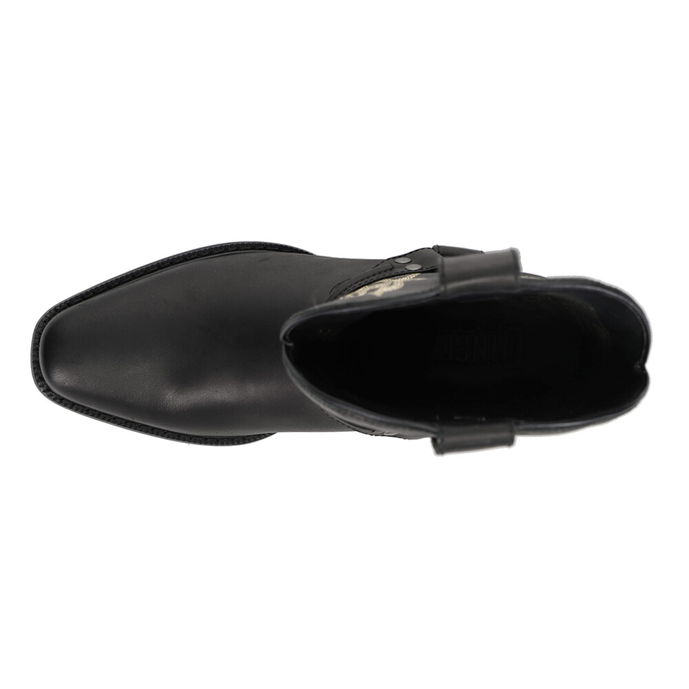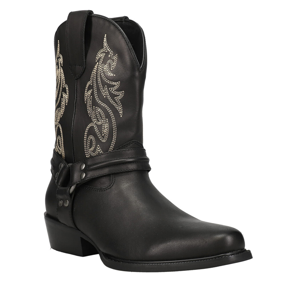 Dragon Embroidered Round Toe Cowboy Boots DI218-BLK Product Details Embroidered leather upper Pull on entry Moto harness accent Hinged cushion insole Rubber outsole Let the Dragon boot take you down an old country road or tailgating at the stadium. These Western inspired boots feature an embroidered leather upper with a moto harness accent. Take a wild ride in the Dragon boots from Dingo. Additional Details Color: Black Occasion: Dress Gender: Mens Age: Adult Brand: Dingo
