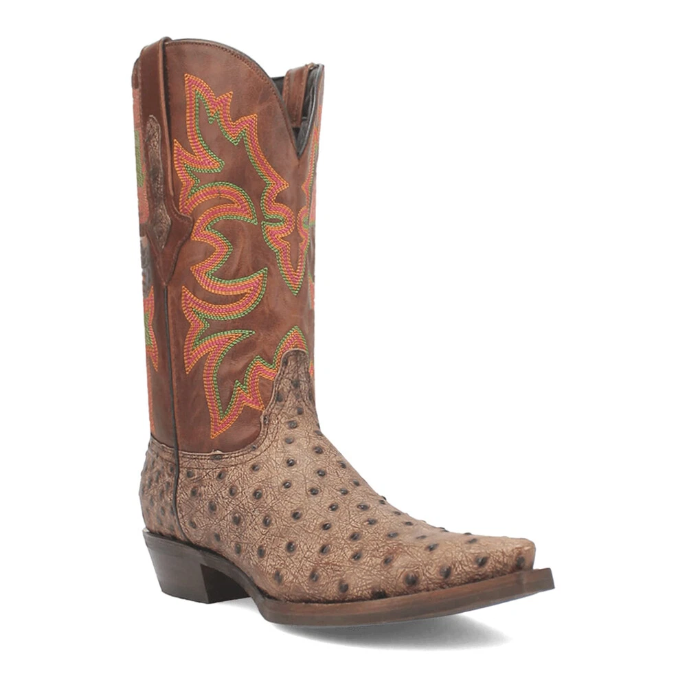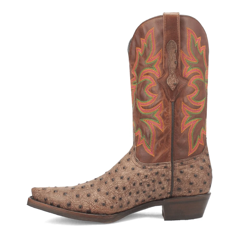 Dingo Outlaw Embroidered Ostrich Print Snip Toe Cowboy Mens Brown Casual Boots