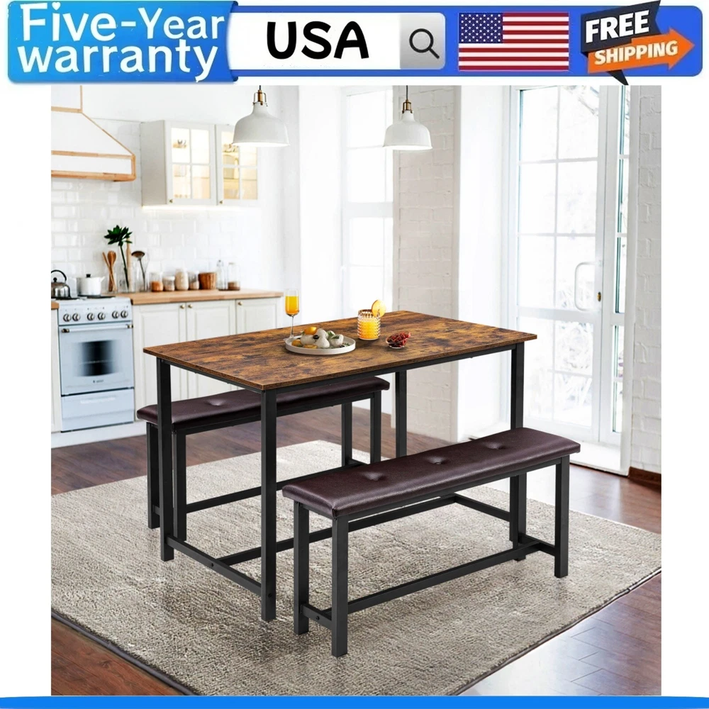 About this item COZY UPHOLSTERED BENCHES: This dining table set of 4 is made of premium MDF board and solid steel, which features a sturdy frame for a long lifespan. The use of metal pipes with a larger diameter makes the kitchen bench more stable and comfortable than other products. The Upgraded Dining Bench seats are padded with thick cushions, keeping you comfortable all dining time. More comfortable than a traditional wooden Bench. PREMIUM & STURDY CONSTRUCTION: This retro gray kitchen table set with a metal frame, which offers a longer service life and more excellent stability. With the premium thickening MDF Board top, the overall durability would be significantly increased. Protective steel plates have been added to the four corners of the desktop, making it more stable to use. The H-shaped frame of the base makes this kitchen bench and table more sturdy and durable. Bench load-bearing reaches 400 lbs. EASY TO MAINTAIN: The surface of the dining table set of 4 is a waterproof and anti-corrosive coating, you can easily wipe soup, sauce, and dust clean, and the surface will not be hurt, and is sturdy for long-term use. SPACE-SAVING DESIGN: 2 kitchen benches can be hidden under the kitchen table to save space and create a tidy atmosphere. It is an excellent solution for small spaces, such as condos, kitchens, studios, or apartments. EASY TO ASSEMBLE: All the assembly hardware and tools come with this dining table set. With illustrated instructions, this table and bench table dining set can be assembled within 40 min without effort. Dimensions: Table Size 44.49” L*27.59” W*29.59” H, Bench Size 38.59” L*10.69” W*18.59” H. Product Description Fancihabor Dining Table Set for 4, Kitchen Table with 2 Upholstered Benches, Rectangular Dining Room Table Set, 3 Piece Kitchen Table Set 1. A beautiful rustic kitchen table set for the living room, dining room, and kitchen, that will fit perfectly into a variety of décor styles.ral strength and durability. 2. A beautiful rustic kitchen table set for the living room, dining room, and kitchen, that will fit perfectly into a variety of décor styles. 3. Sturdy and Durable Frame: Constructed of high-grade MDF board and thickened steel frame and pipe wall, this small kitchen table with 2 benches is long-lasting and you can count on it to be a favorite for years to come. The seat panels of the chair can load over 400 lbs. Additional Steel Pipe, More Durable 2 Cozy Upholstered Seat Large Sturdy Tabletop Specification Color Retro Grey Weight 54.5 LBS Material Metal/MDF Board/Artificial Leather Dimensions Table Size 44.48” L*27.58” W*29.58” H, Bench Size 38.58” L*10.68” W*18.58” H. Max. Load Capacity Table 150 LBS / Bench 400 LBS Package Includes 1 x Dining Table, 2 x Benches, 1 x Instruction, 1 x Accessory Bag Payment Delivery details Terms of sales About us Contact us Payment We accept payment either via PayPal or any of the following credit cards; Visa, MasterCard, Discover, and American Express. Wishing you a happy life! Delivery details We will provide you with the tracking number on the same day or the next day, and transport your package through UPS, DHL, FedEx and other courier methods. If you have any questions, please feel free to contact me and I will do my best to help you solve the problem. Wishing you a happy life! Terms of sales We offer a one month free return and exchange service, and you don't have to bear any losses. We will provide multiple solutions for you to choose from. If you have any questions, please feel free to contact me and I will do my best to help you solve them. We offer a two-year warranty period. If you have any quality issues with the product you purchased within two years, please feel free to contact me. I will provide you with a free replacement service. If you have any questions, please feel free to contact me. I will do my best to help you solve the problem. Wishing you a happy life! About us We are committed to becoming the best eBay seller, with high-quality suppliers, providing the most sincere service, including pre-sales and after-sales service, to give you a satisfactory shopping experience. If you have any questions, please feel free to contact me, and I will do my best to help you solve the problem. Wishing you a happy life! Contact us If you encounter any problems, please contact me by email at the first time, I will provide you with a solution as fast as possible so that I can give you a satisfactory shopping experience, wish you a happy life! Brand Fancihabor Number of Items in Set 3 Set Includes Dining Table, Chairs Room Dining Room, Kitchen, Living Room Seating Capacity 4 Style Retro Item Weight ‎66.6 pounds Manufacturer Warranty 5 Years Item dimensions L x W x H 44.49 x 27.59 x 29.59 inches Material ‎Engineered Wood Mounting Freestanding