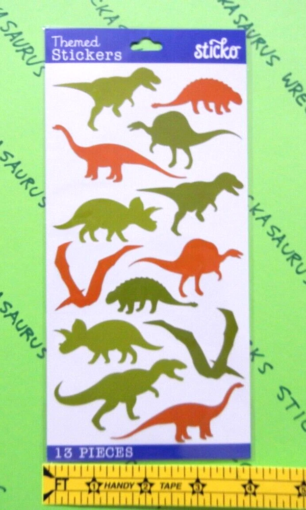 Sticker Pack Is New. Sticker Pack Contains 1 Sheet. Sticker Brand Is Sticko. Sticker Theme Is Dinosaurs Stickers. When Purchasing Multiple Sticker Sheets Or Packs Please Add All Items To Cart Before Purchase So That Your Purchase Combines Down To Base Shipping Price. All items are shipped WITHOUT tracking in an envelope with cardstock.