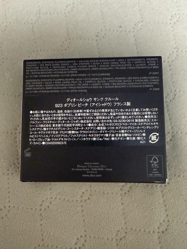 Dior 923 Poplin Peach Eyeshadow Stylish Makeup Official Purchase Key Features ✔ Elevate your makeup collection with the Dior 923 Poplin Peach Eyeshadow, a stunning addition from the renowned Christian Dior brand . This eyeshadow offers a beautiful peach hue that adds a touch of elegance and warmth to any look. Purchased directly from Dior's official online store, it remains in pristine, unused condition and has been stored in a dark place to preserve its quality. This is a perfect opportunity to own a luxurious Dior eyeshadow that has never been . ✔ Whether you're creating a natural daytime look or a more dramatic evening style, this eyeshadow provides versatile and sophisticated color payoff. Its compact design makes it ideal for both everyday wear and special occasions. ✔ Key Features: ✔ - Brand : Christian Dior ✔ - Category: Eyeshadow ✔ - Condition : Brand New, Unused ✔ - Official Dior Product ✔ C: Brand : Christian Dior ✔ C:Category: Eyeshadow ✔ C: Condition : New, Unused ✔ C: Color : Peach ✔ C:Product Line: Dior Addict ✔ C:Model Number: 923 Poplin Peach ✔ C:Country of Manufacture: France ✔ C:Official Purchase: Yes ✔ C:Packaging: Original Packaging (if applicable) ✔ C:Material: Powder Eyeshadow ✔ C:Usage: Eye Makeup ✔ C:Item Type: Eyeshadow Palette Specifications Brand Christian Dior Additional Description This is an unused item. The exact product shown in the photos will be shipped, including all accessories pictured. We offer many discontinued and highly sought-after colors. Please note that since some items have been in long-term storage, the box or case may have minor scratches, even if the product itself is brand new and unused. We also have a variety of vintage collector's items in stock. If you are looking for a specific product or have any questions, feel free to contact us. If you have any questions or concerns about this item please feel free to contact us. We also have many other items on ebay besides this item. It would be great if you could take a look at that as well. If you do not see the item you want in our listings please contact us and we will do our best to find it for you. We will do our best to find the item you want. Please make sure you understand all of our policies including our sales policy before you buy. We are selling this item in accordance with ebay's policies. Please be sure to review ebay's policies before making a purchase Handling Time Handling Time : 10 business days Due to the global surge in shipping volumes, carriers are currently handling a significantly higher number of packages. Therefore it is possible that there may be delays in pickup shipping and during transit. Please make your purchase with an understanding of these potential delays. In the event of any delays rest assured that we will investigate and take responsibility. Please buy with confidence. Message For You Thanks for taking a look at my products. We hope you will consider them. I am listing on ebay with my company. I am listing my products on ebay in Japan. I have only slight feedback. It may be making you uncomfortable. But don't worry. I will provide courteous and responsive service. We also have a variety of other products for sale. We hope you will take a look at those as well. If you are looking for a particular item that is not in my listing please do not hesitate to contact me. I will look it for you. We hope you will consider purchasing our products. Please be sure to review and understand the policies listed below before making a purchase. If you have any questions please contact us. There is an inquiry button at the top. Notice Becausethe international air shipping forbid to ship liquidpowder and batteries If you purchased goods containing such items we will not be putting them packing. Please understand them before purchasing the product. INTERNATIONAL BUYERS Import duties taxes and fees are not included in the price or shipping charges of the items you purchase. You are responsible for payment of any import duties taxes and fees. If you are unsure of the price of import duties taxes and fees please contact your country's customs office for confirmation. If you owe import duties taxes or fees they will be charged to you by the shipping company. When we ship goods we do not undervalue the declared value below the value of the goods. We also do not ship as gifts. These are strictly prohibited by eBay policy. Please refer to the following for more information. ebay.com/help/buying/shipping-delivery/changing-delivery-address-method/international-purchases-shipping?id=4057 There are also other ebay policies that buyers should review. Please be sure to abide by them before making a purchase. FEEDBACK POLICY We provide timely customer support to all purchasers. We will respond to your inquiry within 24 hours. Our working hours are from 10:00 to 20:00 Japan time. Once you have received your item please make feedback for us as this will let us know that you have received your item. In case of damage please be sure to take pictures of the following items and send them to us 1. Photograph of the entire item 2. Photograph of the part 3. A photo of the condition of the cushioning material in the package 4. A photo of the condition of the cardboard box it arrived in SHIPPING POLICY Shipping methods are Japan Post FedEx and DHL. If you select "Economy Shipping from outside US" or "Economy International Shipping" at the time of purchase your order will basically be shipped by Japan Post. All shipments are tracked. Please buy with confidence. Shipping by Fedex or DHL is the fastest shipping method available. This can be changed for an additional charge. Please select "Standard Shipping from Outside the U.S." or "International Standard Shipping" if you prefer. Shipments are usually made within 5-10 business days. The earliest we can ship is the day after the ship date and in some areas it may take several days but we try to get your order to you 