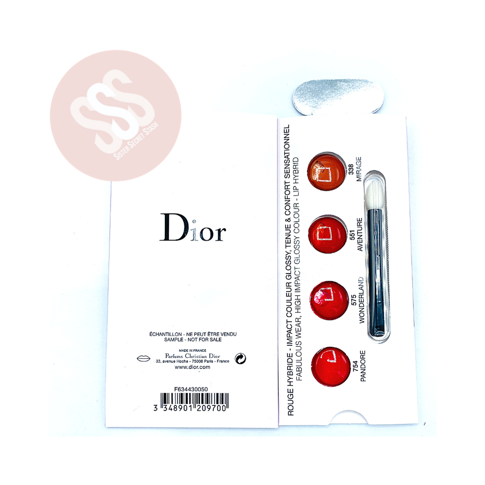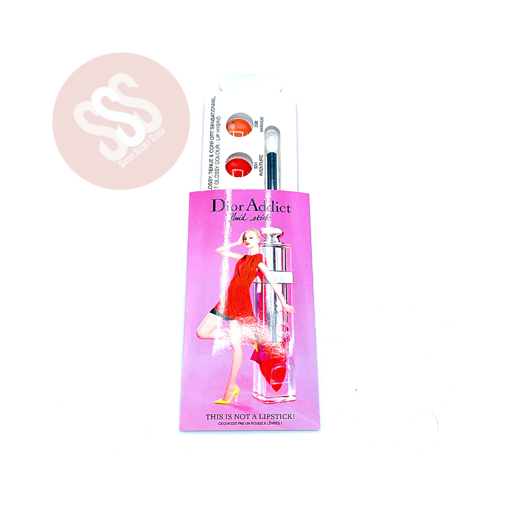 DIOR ADDICT FLUID STICK HIGH IMPACT GLOSSY COLOR LIP HYBRID DELUXE TRAVEL SAMPLE. Shades: #754 Pandore #575 Wonderland #551 Adventure #338 Mirage Size: Deluxe Travel Sample Packet Red Color