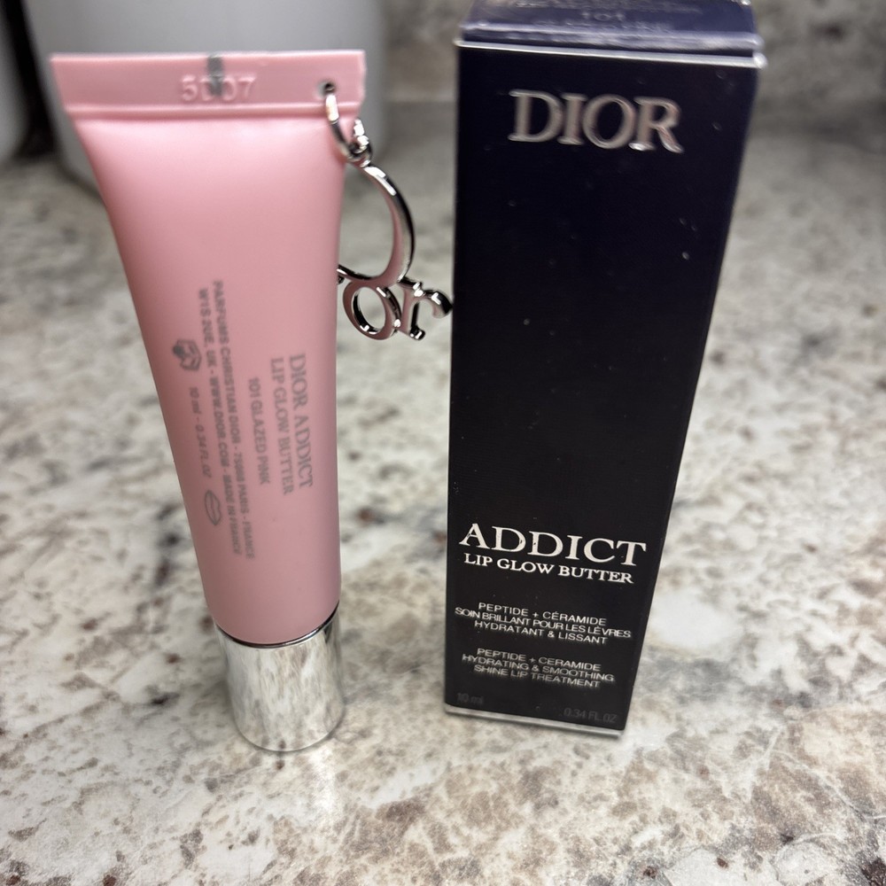 Dior Addict Lip Glow Butter is a high-shine lip treatment that is the perfect balance between a balm and gloss. Made from 90% natural-origin ingredients¹ and infused with a peptide and ceramide duo, it instantly enhance the look of lips with a touch of color and shine while deeply hydrating them for 24 hours.² The buttery texture visibly plumps and smooths lips for 24 hours,³ while providing an ultra-comfortable, soothing sensation for up to 8 hours.⁴ The applicator hugs the natural shape of your lips, delivering a soft, pillowy feel with every swipe.