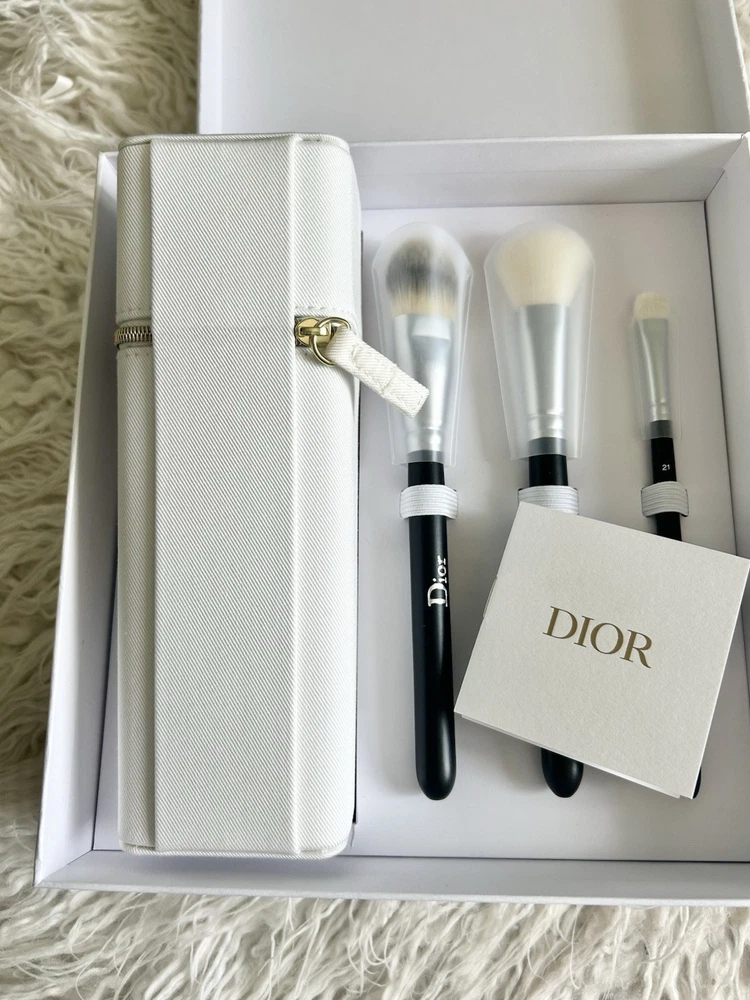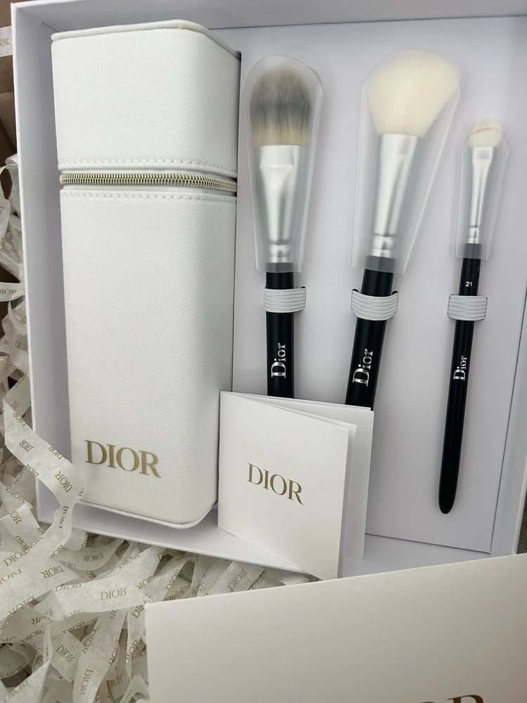 Authentic Dior Backstage Brush Set – Brand New NWT This is a NWT, Dior Backstage brush set that includes three professional makeup brushes and a Dior zip travel brush case. Details: • Dior Backstage Fluid Foundation Brush (No. 11) • Dior Backstage Blush Brush (No. 16) • Dior Backstage Eyeshadow Shader Brush (No. 21) • Dior zipper with logo printed Dior brush case (textured white, logo embossed). Size: 7.5 x 2.5 x 2.5 (inches) Also included: •Dior white branded box • Dior branded wrapping paper