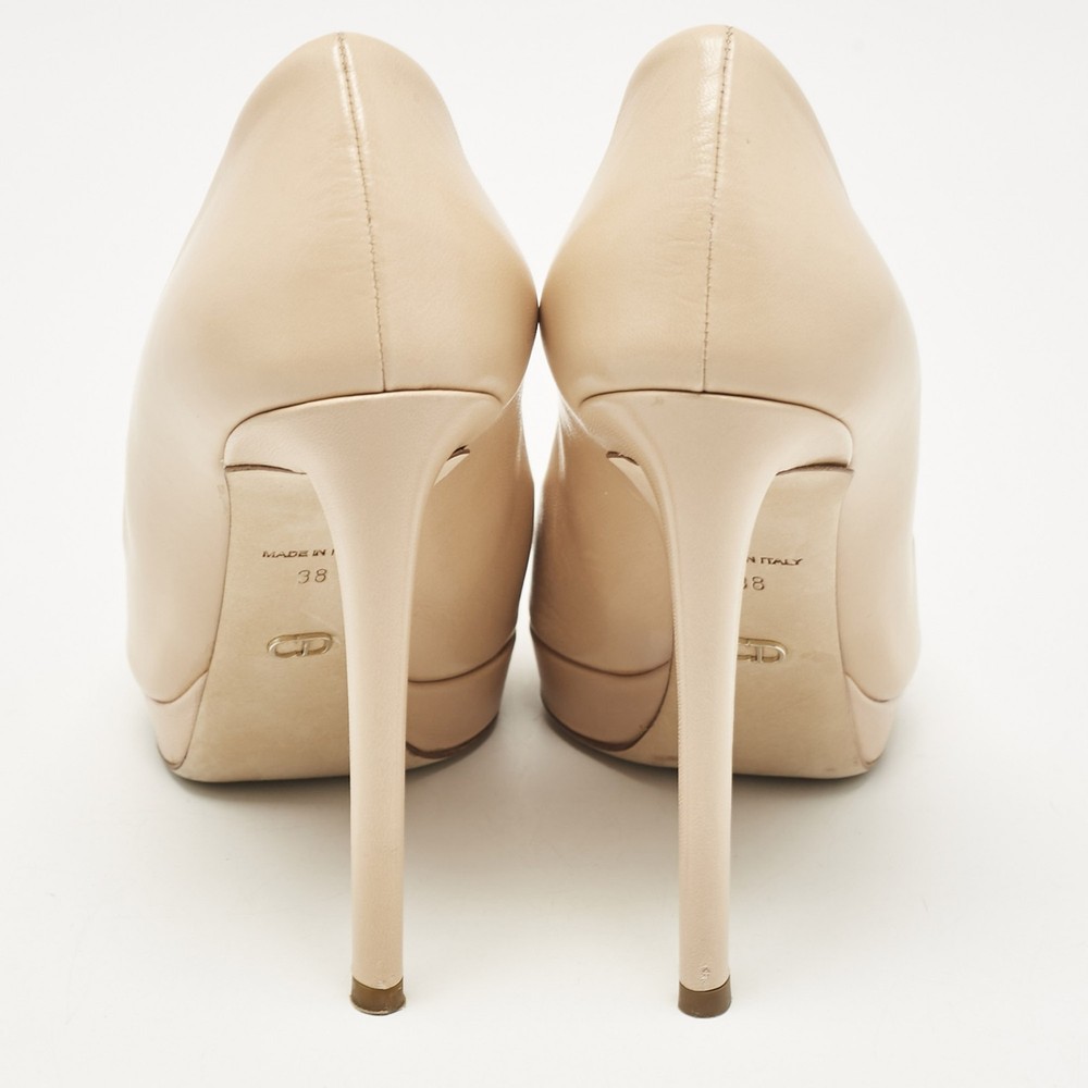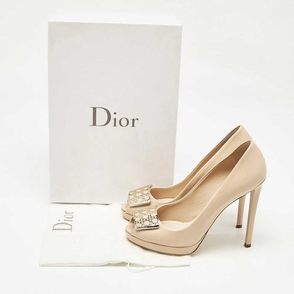 Make a chic style statement with these designer pumps. They showcase sturdy heels and durable soles, perfect for your fashionable outingsCertified by The Luxury Closet - This item has gone through a detailed authentication process overseen by our experts. We offer a lifetime guarantee of authenticity on all our items. Import duties, taxes and charges are not included in the item price. These charges are the buyers responsibility. Please check with your country’s customs office to determine what these additional cost will be prior to buying. Our eBay Store About Us Contact Us Add to Favorite Sellers Dior Beige Leather Cannage Plaque Peep Toe Platform Pumps Size 38 $225.5 Make a chic style statement with these designer pumps. They showcase sturdy heels and durable soles, perfect for your fashionable outings Product Details Brand Color Beige Dimensions Material Leather Size 38 Outsole Width 7.5 cm Outsole Length 21.5 cm Heel Height 12 cm Includes Original Dustbag, Original Box Certified by The Luxury Closet This item has gone through a detailed authentication process overseen by our experts. We offer a lifetime guarantee of authenticity on all our items. How We Check The in-house team of experts at The Luxury Closet is highly trained to verify the authenticity and the condition of the luxury products. They ensure that only 100% authentic items are put on sale.The evaluation process is unique with its own mix of assessment criteria and differs according to the category. Each item is evaluated based on the following combination of hallmarks, hardware, stitching, symmetry, material, craftsmanship, stamping, codes, hologram stickers, and packaging. Our authenticators also check if the items have been modified or amended (e.g., aftermarket diamonds, replaced batteries, repaired bags, etc.) International Buyers Import duties, taxes and charges are not included in the item price. These charges are the buyers responsibility. Please check with your country’s customs office to determine what these additional cost will be prior to buying.