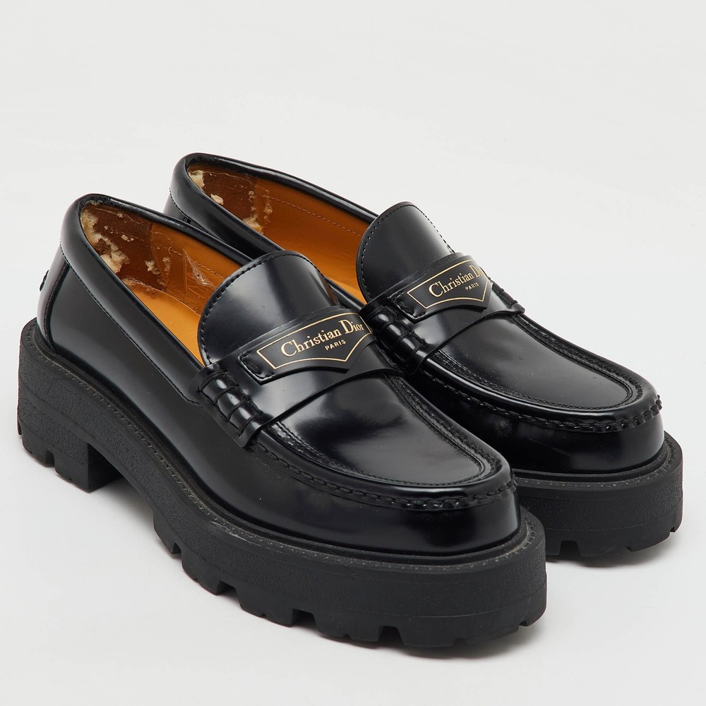 Bold yet refined, these Dior Boy platform loafers make a modern statement with their sleek brushed black leather and chunky silhouette. The slip on design exudes effortless cool, while the raised sole adds a rebellious edge to classic tailoring. A versatile piece with runway attitude.Certified by The Luxury Closet - This item has gone through a detailed authentication process overseen by our experts. We offer a lifetime guarantee of authenticity on all our items. Import duties, taxes and charges are not included in the item price. These charges are the buyers responsibility. Please check with your country’s customs office to determine what these additional cost will be prior to buying. Our eBay Store About Us Contact Us Add to Favorite Sellers Dior Black Brushed Leather Boy Platform Slip On Loafers Size 37 $631.4 Bold yet refined, these Dior Boy platform loafers make a modern statement with their sleek brushed black leather and chunky silhouette. The slip on design exudes effortless cool, while the raised sole adds a rebellious edge to classic tailoring. A versatile piece with runway attitude. Product Details Brand Color Black Dimensions Material Leather Size 37 Outsole Width Outsole Length Heel Height Includes Certified by The Luxury Closet This item has gone through a detailed authentication process overseen by our experts. We offer a lifetime guarantee of authenticity on all our items. How We Check The in-house team of experts at The Luxury Closet is highly trained to verify the authenticity and the condition of the luxury products. They ensure that only 100% authentic items are put on sale.The evaluation process is unique with its own mix of assessment criteria and differs according to the category. Each item is evaluated based on the following combination of hallmarks, hardware, stitching, symmetry, material, craftsmanship, stamping, codes, hologram stickers, and packaging. Our authenticators also check if the items have been modified or amended (e.g., aftermarket diamonds, replaced batteries, repaired bags, etc.) International Buyers Import duties, taxes and charges are not included in the item price. These charges are the buyers responsibility. Please check with your country’s customs office to determine what these additional cost will be prior to buying.