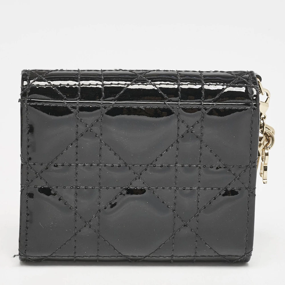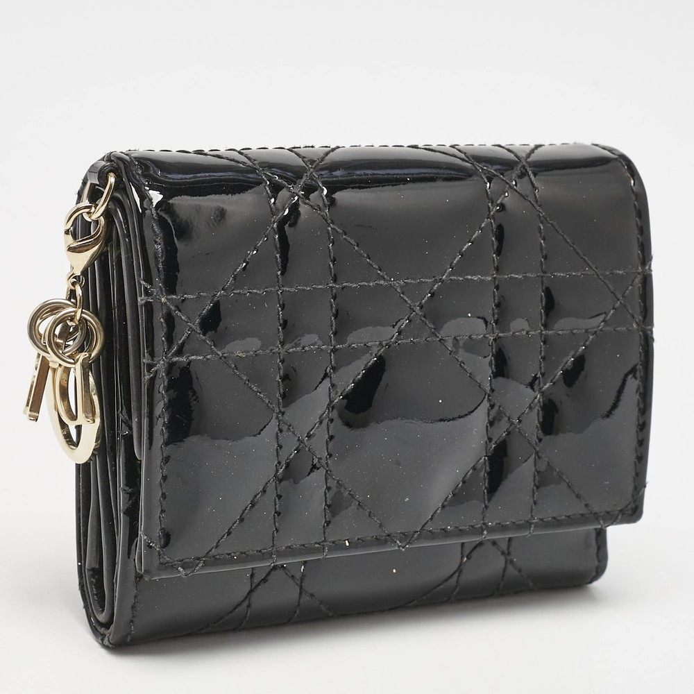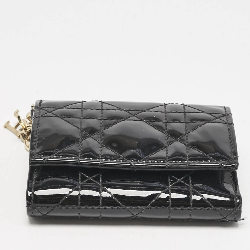 Exuding timeless elegance, this trifold wallet showcases Diors exquisite craftsmanship. The black patent leather exterior, adorned with the iconic Cannage pattern, offers a sleek and polished look. Crafted in Italy, this luxurious accessory harmonizes beauty and function, opening to a refined interior of leather and fabric.Certified by The Luxury Closet - This item has gone through a detailed authentication process overseen by our experts. We offer a lifetime guarantee of authenticity on all our items. Import duties, taxes and charges are not included in the item price. These charges are the buyers responsibility. Please check with your country’s customs office to determine what these additional cost will be prior to buying. Our eBay Store About Us Contact Us Add to Favorite Sellers Dior Black Cannage Patent Leather Lady Dior Trifold Wallet $215.6 Exuding timeless elegance, this trifold wallet showcases Diors exquisite craftsmanship. The black patent leather exterior, adorned with the iconic Cannage pattern, offers a sleek and polished look. Crafted in Italy, this luxurious accessory harmonizes beauty and function, opening to a refined interior of leather and fabric. Product Details Brand Color Black Dimensions Material Patent Leather Size Outsole Width Outsole Length Heel Height Includes Certified by The Luxury Closet This item has gone through a detailed authentication process overseen by our experts. We offer a lifetime guarantee of authenticity on all our items. How We Check The in-house team of experts at The Luxury Closet is highly trained to verify the authenticity and the condition of the luxury products. They ensure that only 100% authentic items are put on sale.The evaluation process is unique with its own mix of assessment criteria and differs according to the category. Each item is evaluated based on the following combination of hallmarks, hardware, stitching, symmetry, material, craftsmanship, stamping, codes, hologram stickers, and packaging. Our authenticators also check if the items have been modified or amended (e.g., aftermarket diamonds, replaced batteries, repaired bags, etc.) International Buyers Import duties, taxes and charges are not included in the item price. These charges are the buyers responsibility. Please check with your country’s customs office to determine what these additional cost will be prior to buying.