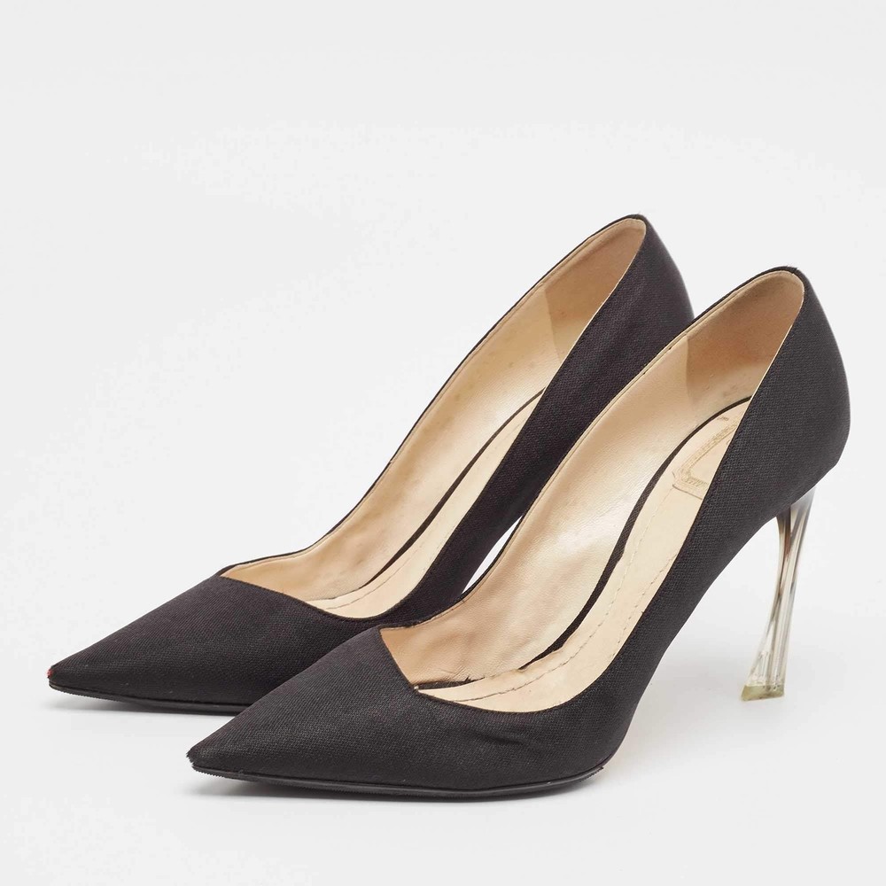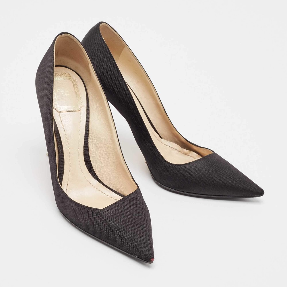Our eBay Store About Us Contact Us Add to Favorite Sellers Dior Black Fabric Perspex Heel Pointed Toe Pumps Size 40 These timeless Dior pumps are meant to last you season after season. Crafted using black fabric, they are designed with a sleek arch, pointed toes, and 10.5 cm heels. Product Details Brand Dior Color Black Includes Original Dustbag Outsole Length 28 cm Outsole Width 8.5 cm Size 40 Certified by The Luxury Closet This item has gone through a detailed authentication process overseen by our experts. We offer a lifetime guarantee of authenticity on all our items. How We Check The in-house team of experts at The Luxury Closet is highly trained to verify the authenticity and the condition of the luxury products. They ensure that only 100% authentic items are put on sale.The evaluation process is unique with its own mix of assessment criteria and differs according to the category. Each item is evaluated based on the following combination of hallmarks, hardware, stitching, symmetry, material, craftsmanship, stamping, codes, hologram stickers, and packaging. Our authenticators also check if the items have been modified or amended (e.g., aftermarket diamonds, replaced batteries, repaired bags, etc.) International Buyers Import duties, taxes and charges are not included in the item price. These charges are the buyers responsibility. Please check with your country’s customs office to determine what these additional cost will be prior to buying.