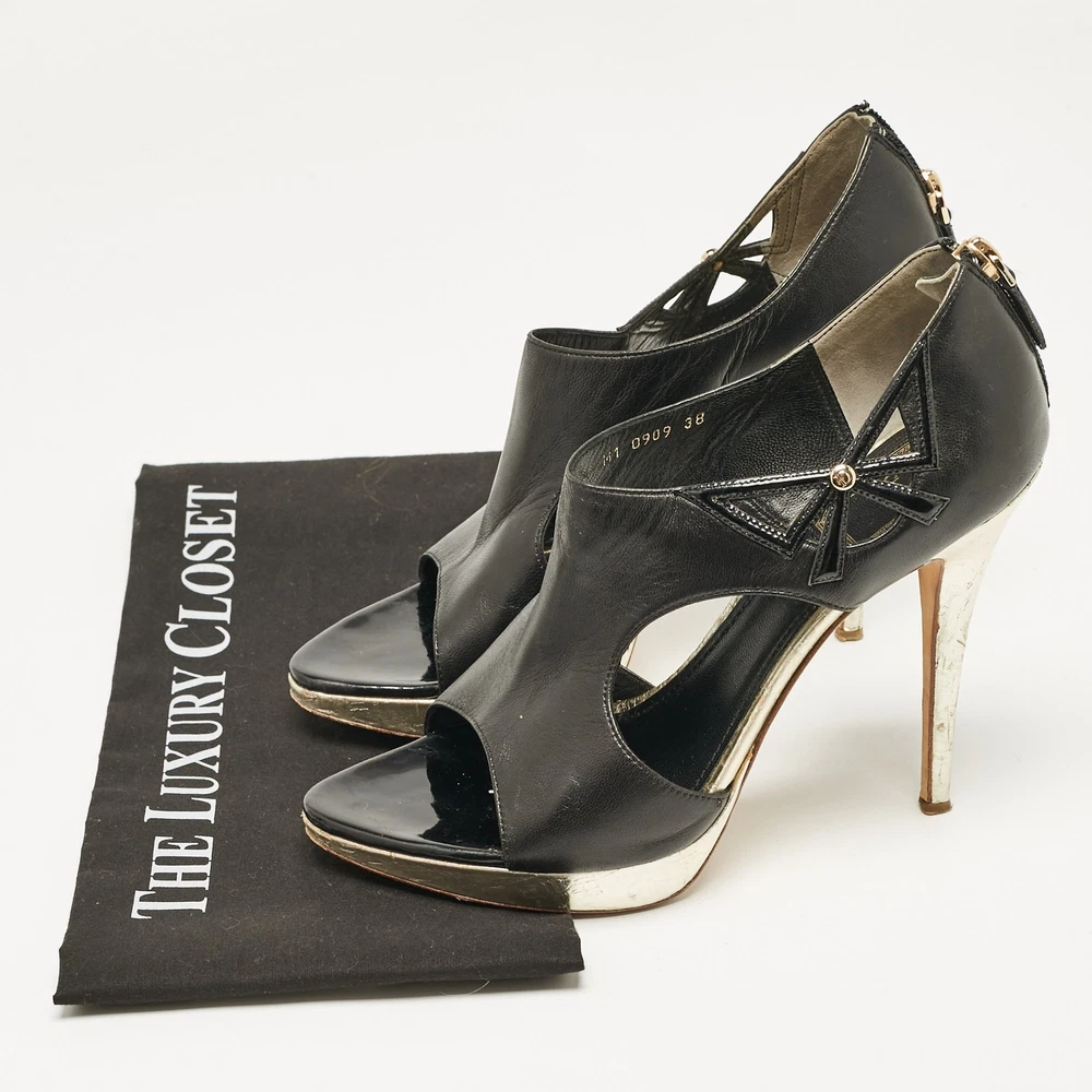Experience the refined elegance of Dior with these striking leather platform pumps. Crafted in Italy, these shoes showcase a luxurious black exterior embellished with sophisticated gold accents and an exquisite bow design. The cut out details add a contemporary touch, while the zip up closure ensures a seamless fit.Certified by The Luxury Closet - This item has gone through a detailed authentication process overseen by our experts. We offer a lifetime guarantee of authenticity on all our items. Import duties, taxes and charges are not included in the item price. These charges are the buyers responsibility. Please check with your country’s customs office to determine what these additional cost will be prior to buying. Our eBay Store About Us Contact Us Add to Favorite Sellers Dior Black/Gold Leather Bow Cut Out Platform Pumps Size 38 $125.4 Experience the refined elegance of Dior with these striking leather platform pumps. Crafted in Italy, these shoes showcase a luxurious black exterior embellished with sophisticated gold accents and an exquisite bow design. The cut out details add a contemporary touch, while the zip up closure ensures a seamless fit. Product Details Brand Color Black Dimensions Material Leather Size 38 Outsole Width 8 cm Outsole Length 20 cm Heel Height 11 cm Includes The Luxury Closet Packaging Certified by The Luxury Closet This item has gone through a detailed authentication process overseen by our experts. We offer a lifetime guarantee of authenticity on all our items. How We Check The in-house team of experts at The Luxury Closet is highly trained to verify the authenticity and the condition of the luxury products. They ensure that only 100% authentic items are put on sale.The evaluation process is unique with its own mix of assessment criteria and differs according to the category. Each item is evaluated based on the following combination of hallmarks, hardware, stitching, symmetry, material, craftsmanship, stamping, codes, hologram stickers, and packaging. Our authenticators also check if the items have been modified or amended (e.g., aftermarket diamonds, replaced batteries, repaired bags, etc.) International Buyers Import duties, taxes and charges are not included in the item price. These charges are the buyers responsibility. Please check with your country’s customs office to determine what these additional cost will be prior to buying.