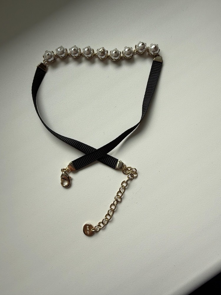 Dior Black Lace Pearl Choker Necklace Elegant New Design