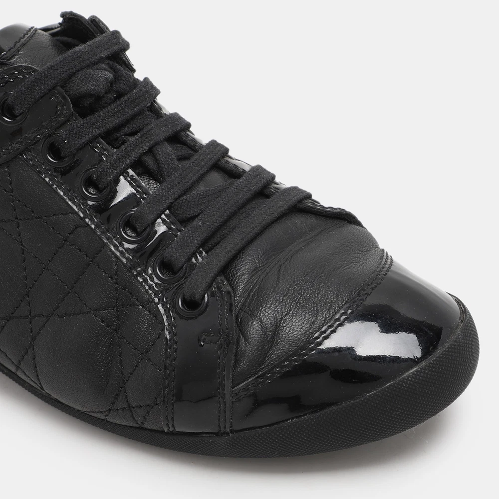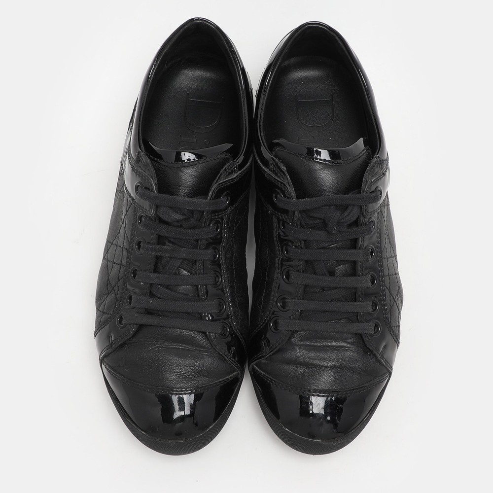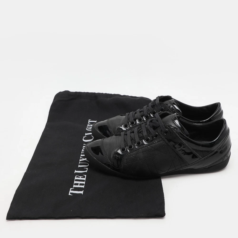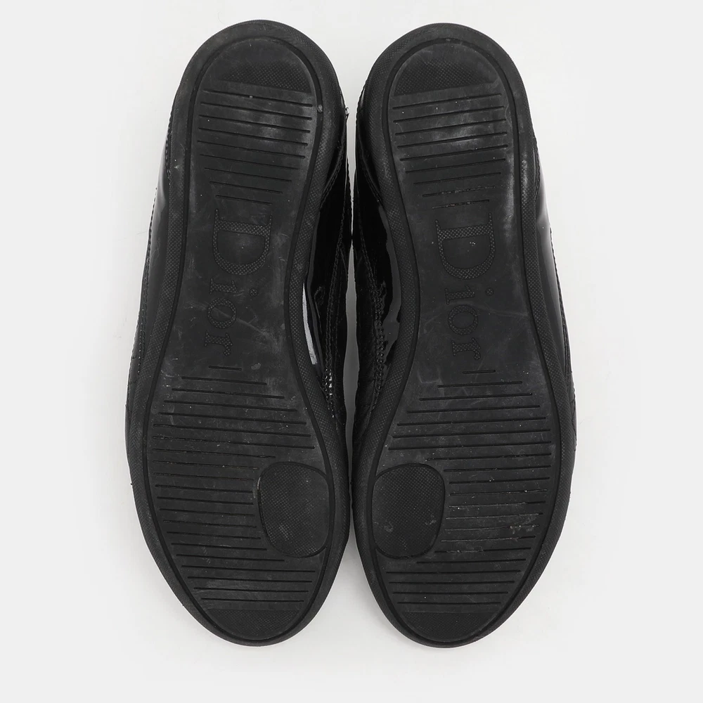 Dior Black Leather Low Top Sneakers with Patent Accents Size 36.5