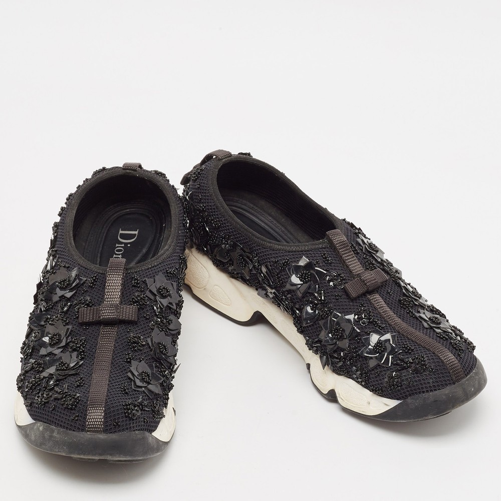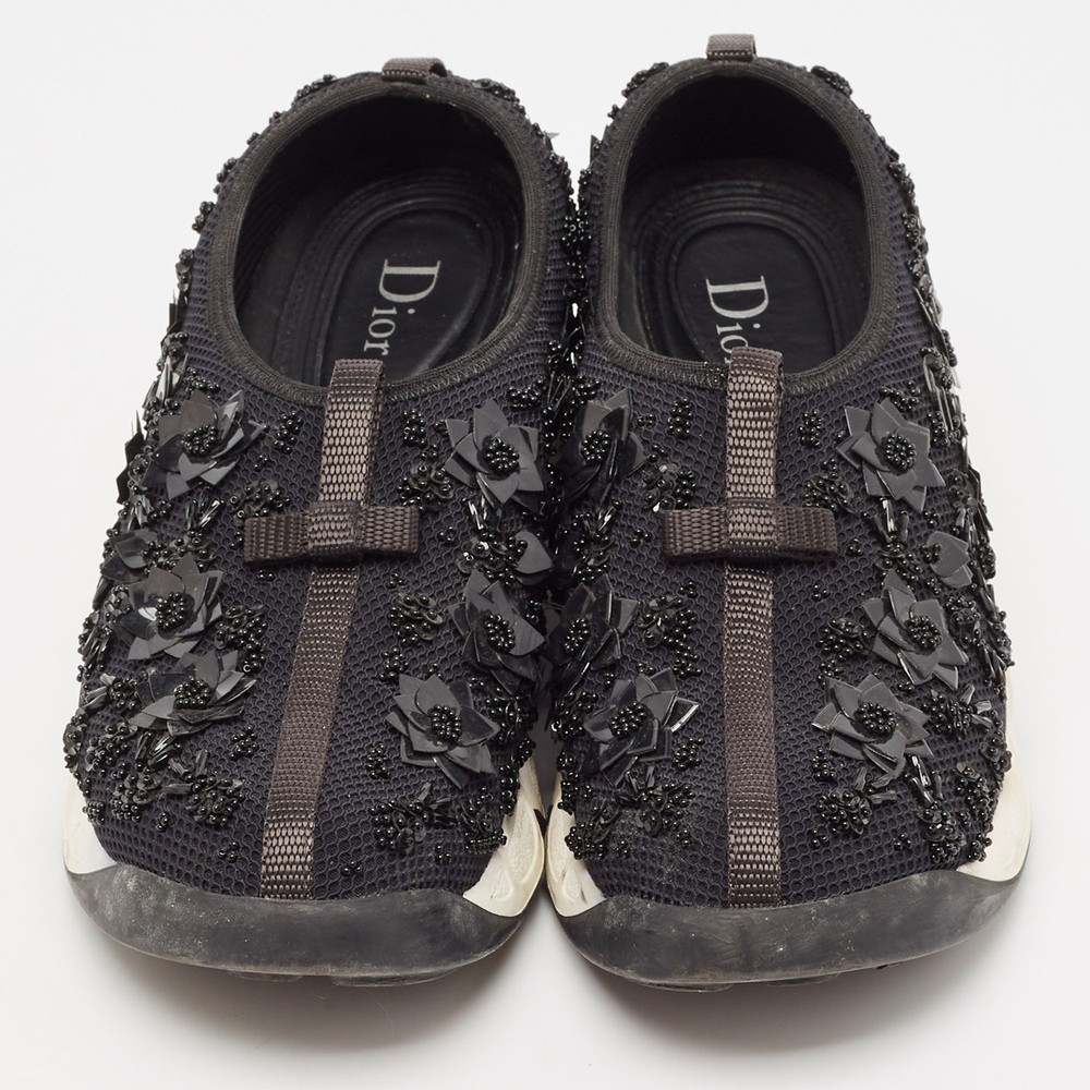 The words edgy and ultra modern can be readily attributed to this pair from Dior. The sneakers were first introduced as a part of their Haute Couture Spring / Summer 2014 collection. Crafted from mesh, they feature embellishments and rubber soles. Trendy detailing, along with the brands lettering on the midsoles, enhances and makes the sneakers worth your buy.Certified by The Luxury Closet - This item has gone through a detailed authentication process overseen by our experts. We offer a lifetime guarantee of authenticity on all our items. Import duties, taxes and charges are not included in the item price. These charges are the buyers responsibility. Please check with your country’s customs office to determine what these additional cost will be prior to buying. Our eBay Store About Us Contact Us Add to Favorite Sellers Dior Black Mesh Embellished Fusion Sneakers Size 39.5 $177.1 The words edgy and ultra modern can be readily attributed to this pair from Dior. The sneakers were first introduced as a part of their Haute Couture Spring / Summer 2014 collection. Crafted from mesh, they feature embellishments and rubber soles. Trendy detailing, along with the brands lettering on the midsoles, enhances and makes the sneakers worth your buy. Product Details Brand Color Black Dimensions Material Mesh Size 39.5 Outsole Width Outsole Length Heel Height Includes Original Dustbag, Original Box, Card, Info Booklet, Extra Embellished Certified by The Luxury Closet This item has gone through a detailed authentication process overseen by our experts. We offer a lifetime guarantee of authenticity on all our items. How We Check The in-house team of experts at The Luxury Closet is highly trained to verify the authenticity and the condition of the luxury products. They ensure that only 100% authentic items are put on sale.The evaluation process is unique with its own mix of assessment criteria and differs according to the category. Each item is evaluated based on the following combination of hallmarks, hardware, stitching, symmetry, material, craftsmanship, stamping, codes, hologram stickers, and packaging. Our authenticators also check if the items have been modified or amended (e.g., aftermarket diamonds, replaced batteries, repaired bags, etc.) International Buyers Import duties, taxes and charges are not included in the item price. These charges are the buyers responsibility. Please check with your country’s customs office to determine what these additional cost will be prior to buying.
