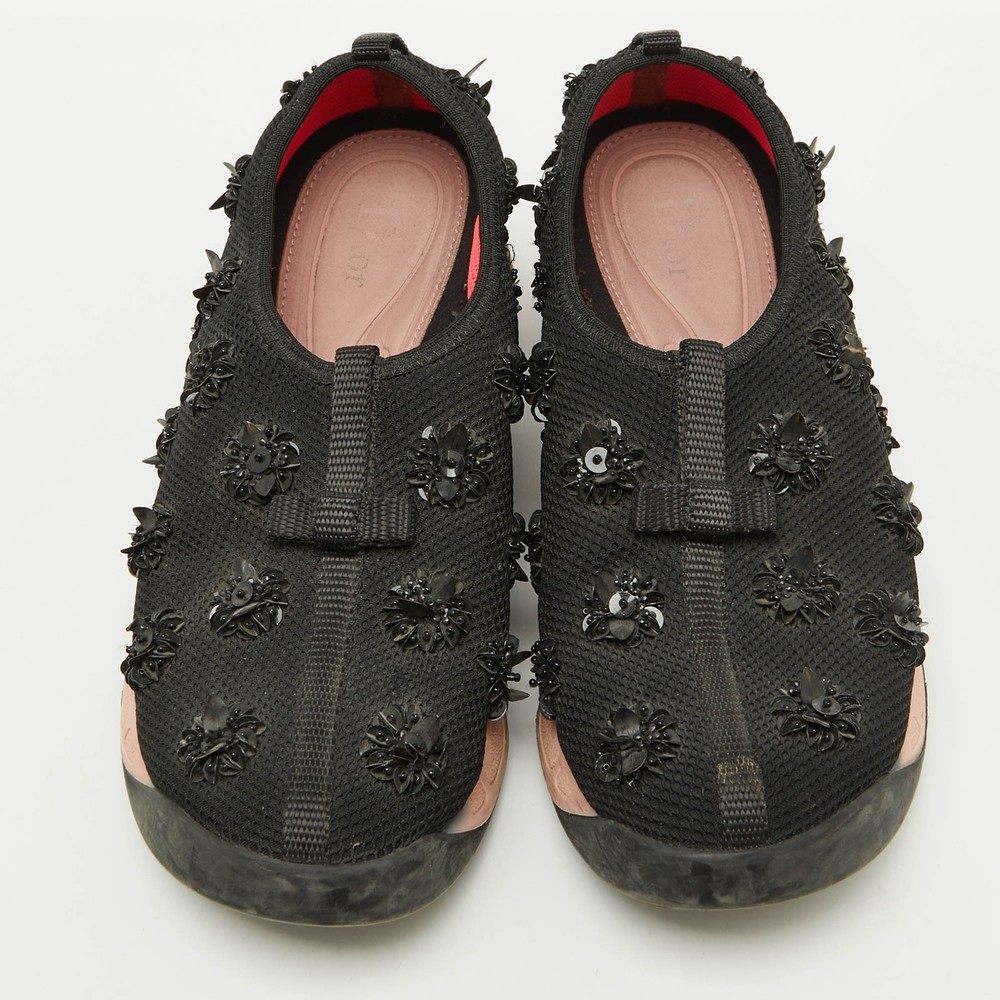 $ 280.06Dior Black Mesh Floral Embellished Slip-On Sneakers Size 38.5