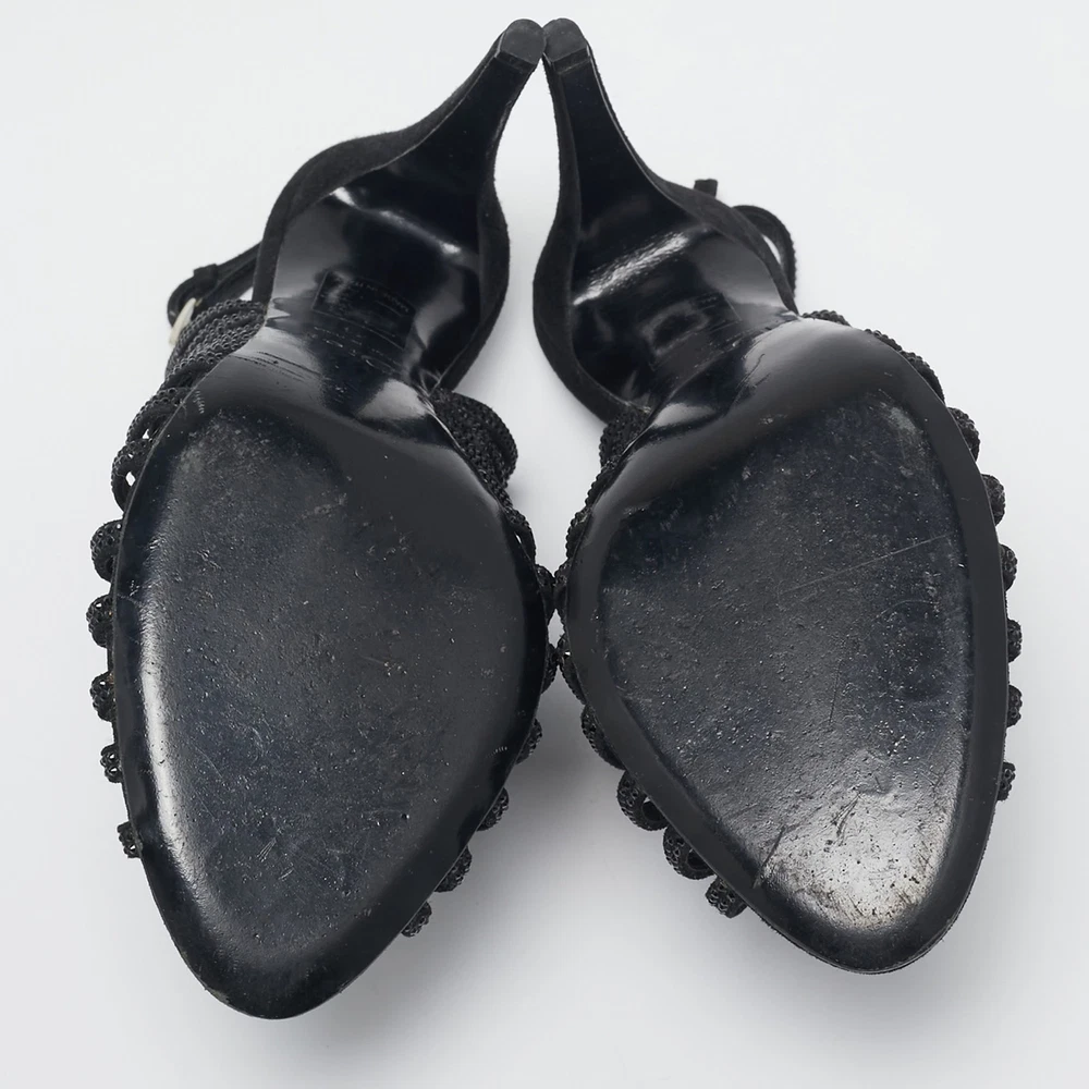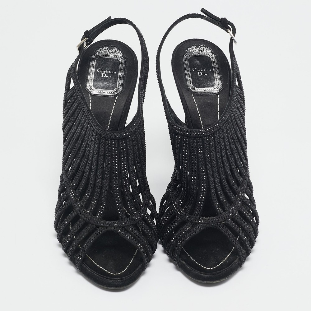 Glamour meets sophistication in Dior’s black sandals. The strappy suede exterior is adorned with dazzling crystals, and the adjustable ankle strap ensures a perfect fit. These sandals are your go to for unforgettable evenings.Certified by The Luxury Closet - This item has gone through a detailed authentication process overseen by our experts. We offer a lifetime guarantee of authenticity on all our items. Import duties, taxes and charges are not included in the item price. These charges are the buyers responsibility. Please check with your country’s customs office to determine what these additional cost will be prior to buying. Our eBay Store About Us Contact Us Add to Favorite Sellers Dior Black Suede Crystal Embellished Ankle Strap Sandals Size 41 $151.8 Glamour meets sophistication in Dior’s black sandals. The strappy suede exterior is adorned with dazzling crystals, and the adjustable ankle strap ensures a perfect fit. These sandals are your go to for unforgettable evenings. Product Details Brand Color Black Dimensions Material Suede Size 41 Outsole Width 8 cm Outsole Length 23 cm Heel Height 12 cm Includes The Luxury Closet Packaging Certified by The Luxury Closet This item has gone through a detailed authentication process overseen by our experts. We offer a lifetime guarantee of authenticity on all our items. How We Check The in-house team of experts at The Luxury Closet is highly trained to verify the authenticity and the condition of the luxury products. They ensure that only 100% authentic items are put on sale.The evaluation process is unique with its own mix of assessment criteria and differs according to the category. Each item is evaluated based on the following combination of hallmarks, hardware, stitching, symmetry, material, craftsmanship, stamping, codes, hologram stickers, and packaging. Our authenticators also check if the items have been modified or amended (e.g., aftermarket diamonds, replaced batteries, repaired bags, etc.) International Buyers Import duties, taxes and charges are not included in the item price. These charges are the buyers responsibility. Please check with your country’s customs office to determine what these additional cost will be prior to buying.