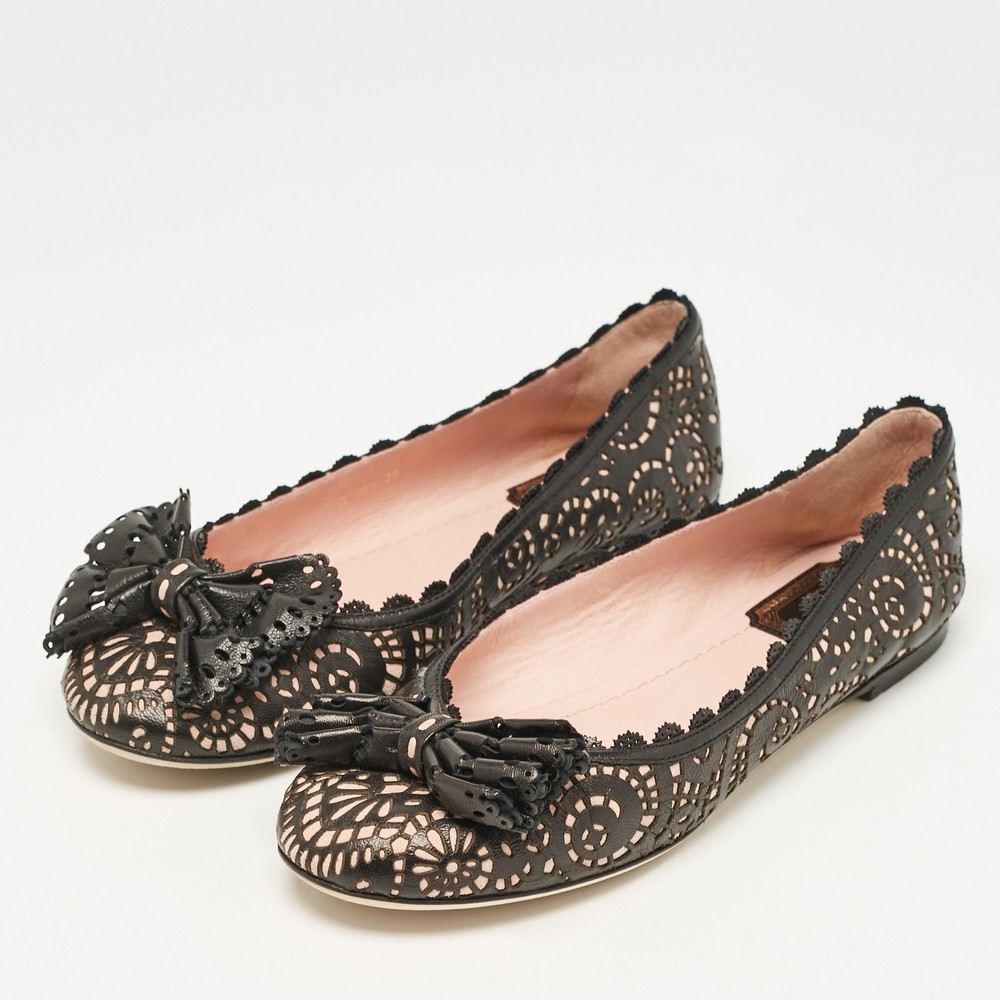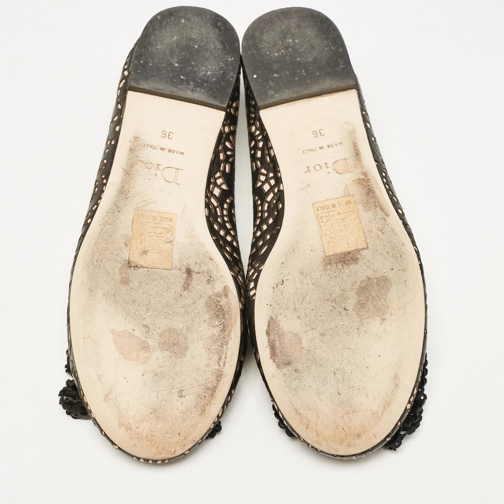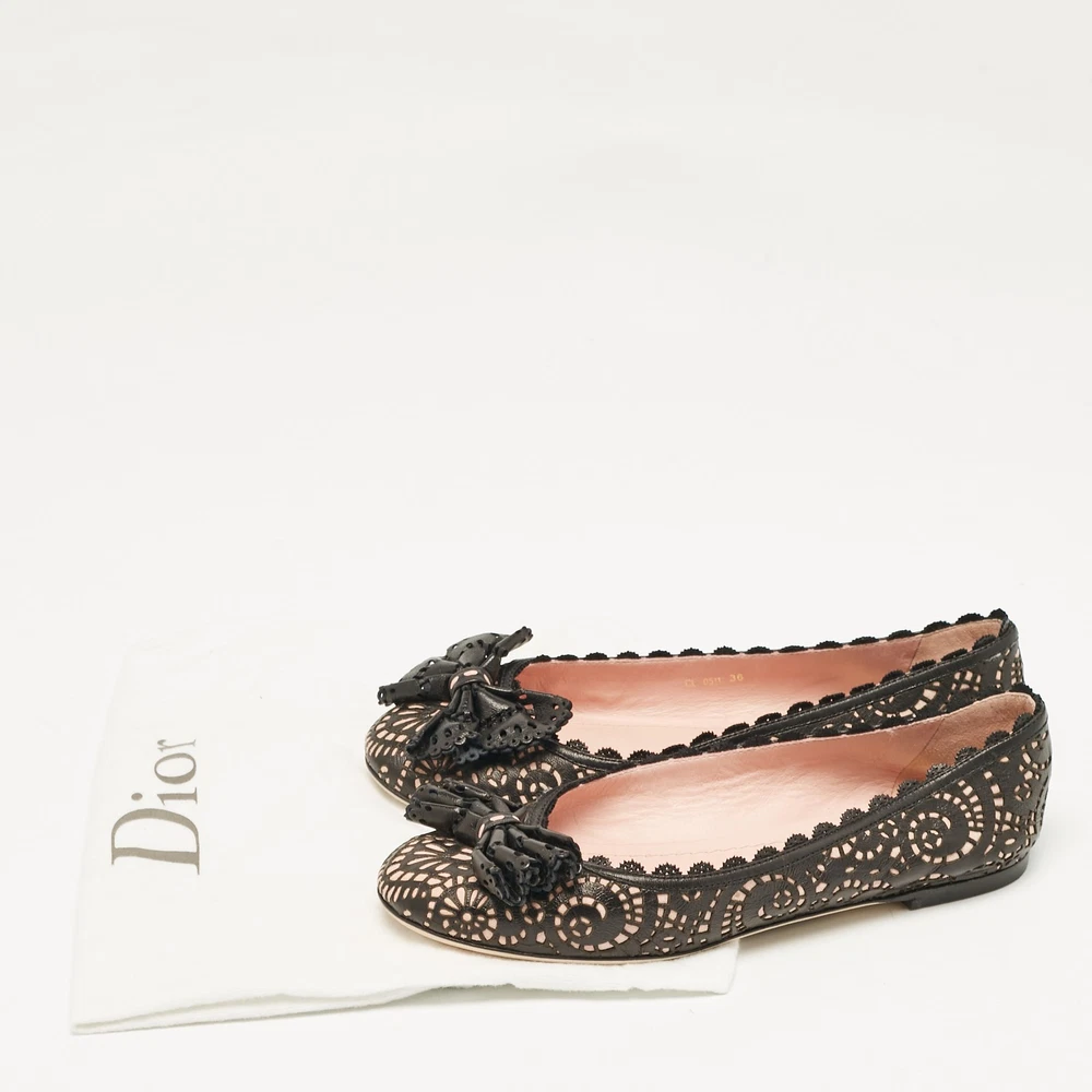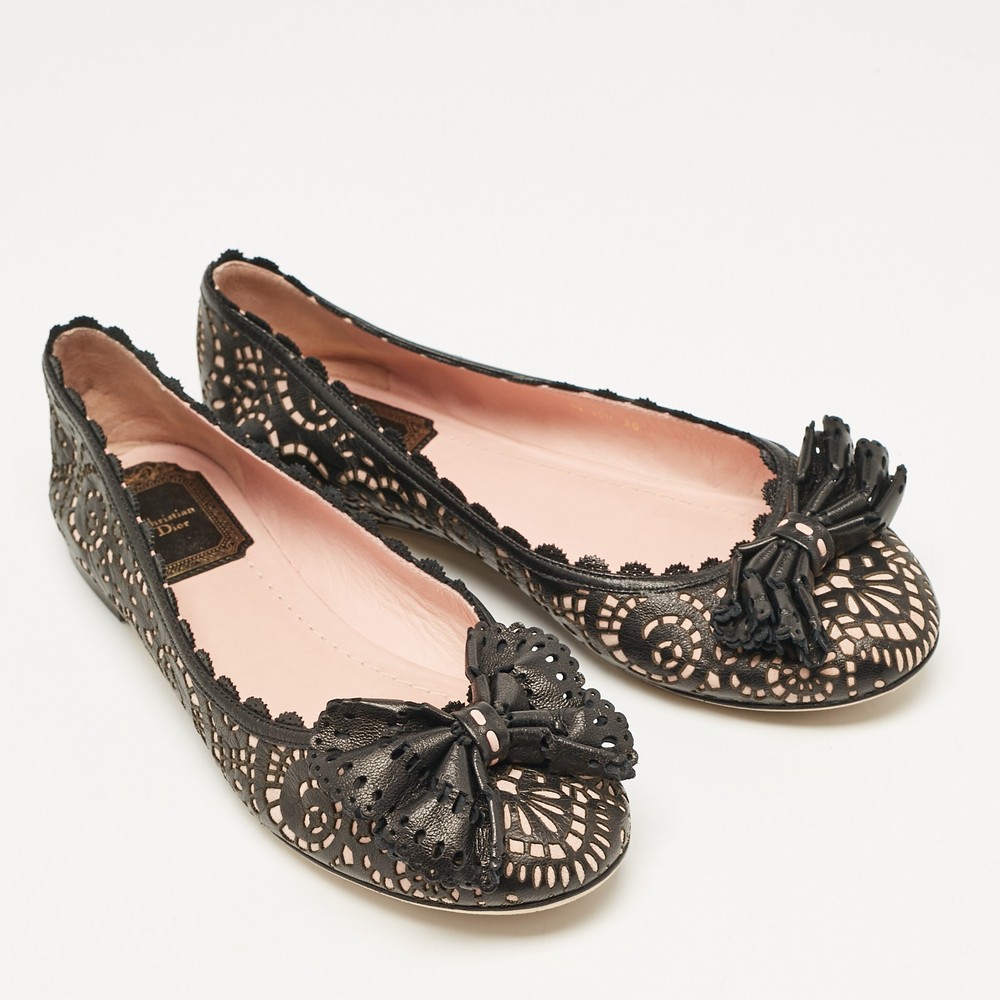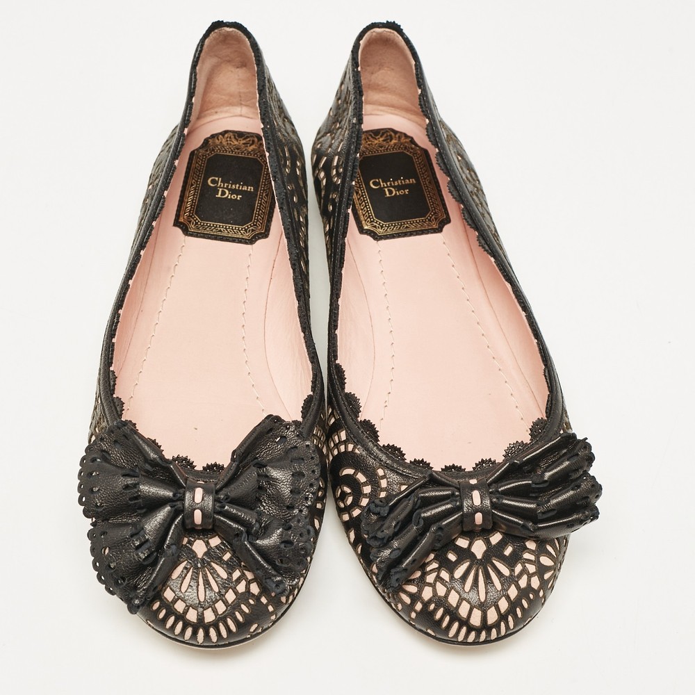 These Dior ballet flats are a playful mix of black and pink laser cut leather with a bow detail. Unique and stylish, they are ideal for adding a touch of whimsy to your outfit.Certified by The Luxury Closet - This item has gone through a detailed authentication process overseen by our experts. We offer a lifetime guarantee of authenticity on all our items. Import duties, taxes and charges are not included in the item price. These charges are the buyers responsibility. Please check with your country’s customs office to determine what these additional cost will be prior to buying. Our eBay Store About Us Contact Us Add to Favorite Sellers Dior Black/Pink Laser Cut Leather Bow Ballet Flats Size 36 $188.1 These Dior ballet flats are a playful mix of black and pink laser cut leather with a bow detail. Unique and stylish, they are ideal for adding a touch of whimsy to your outfit. Product Details Brand Color Black Dimensions Material Leather Size 36 Outsole Width Outsole Length Heel Height Includes Original Dustbag Certified by The Luxury Closet This item has gone through a detailed authentication process overseen by our experts. We offer a lifetime guarantee of authenticity on all our items. How We Check The in-house team of experts at The Luxury Closet is highly trained to verify the authenticity and the condition of the luxury products. They ensure that only 100% authentic items are put on sale.The evaluation process is unique with its own mix of assessment criteria and differs according to the category. Each item is evaluated based on the following combination of hallmarks, hardware, stitching, symmetry, material, craftsmanship, stamping, codes, hologram stickers, and packaging. Our authenticators also check if the items have been modified or amended (e.g., aftermarket diamonds, replaced batteries, repaired bags, etc.) International Buyers Import duties, taxes and charges are not included in the item price. These charges are the buyers responsibility. Please check with your country’s customs office to determine what these additional cost will be prior to buying.