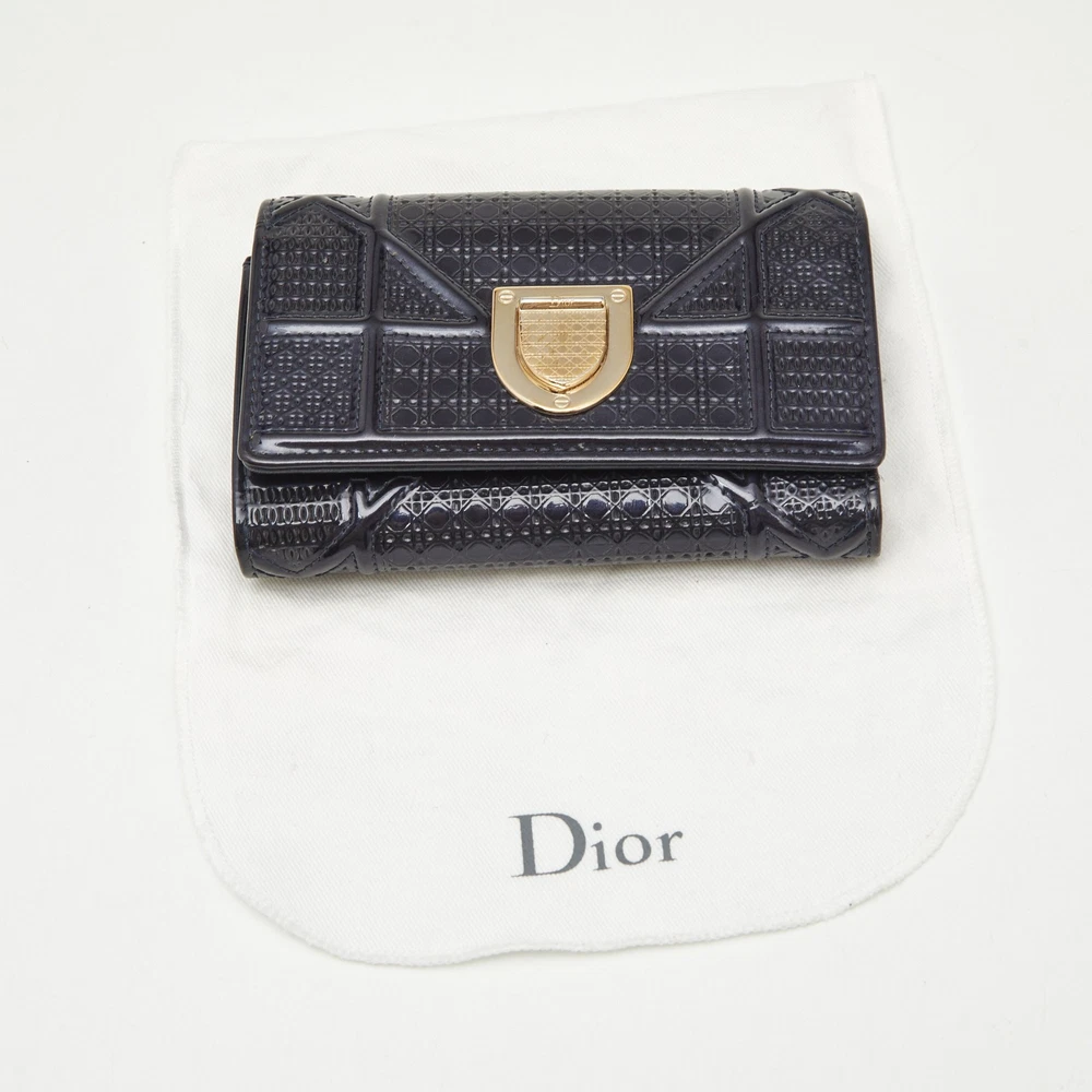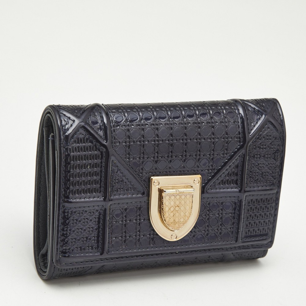 Petite in size but bold in presence, this Diorama wallet in glossy blue patent leather brings a dash of haute couture to your daily essentials. The architectural lines and signature crest shaped clasp mirror the iconic Diorama bag, while the trifold layout offers smart functionality in a compact form.Certified by The Luxury Closet - This item has gone through a detailed authentication process overseen by our experts. We offer a lifetime guarantee of authenticity on all our items. Import duties, taxes and charges are not included in the item price. These charges are the buyers responsibility. Please check with your country’s customs office to determine what these additional cost will be prior to buying. Our eBay Store About Us Contact Us Add to Favorite Sellers Dior Blue Patent Leather Diorama Trifold Compact Wallet $488.4 Petite in size but bold in presence, this Diorama wallet in glossy blue patent leather brings a dash of haute couture to your daily essentials. The architectural lines and signature crest shaped clasp mirror the iconic Diorama bag, while the trifold layout offers smart functionality in a compact form. Product Details Brand Color Blue Dimensions Material Patent Leather Size Outsole Width Outsole Length Heel Height Includes Certified by The Luxury Closet This item has gone through a detailed authentication process overseen by our experts. We offer a lifetime guarantee of authenticity on all our items. How We Check The in-house team of experts at The Luxury Closet is highly trained to verify the authenticity and the condition of the luxury products. They ensure that only 100% authentic items are put on sale.The evaluation process is unique with its own mix of assessment criteria and differs according to the category. Each item is evaluated based on the following combination of hallmarks, hardware, stitching, symmetry, material, craftsmanship, stamping, codes, hologram stickers, and packaging. Our authenticators also check if the items have been modified or amended (e.g., aftermarket diamonds, replaced batteries, repaired bags, etc.) International Buyers Import duties, taxes and charges are not included in the item price. These charges are the buyers responsibility. Please check with your country’s customs office to determine what these additional cost will be prior to buying.
