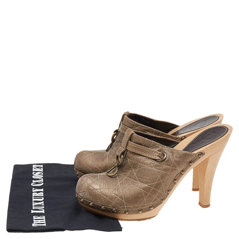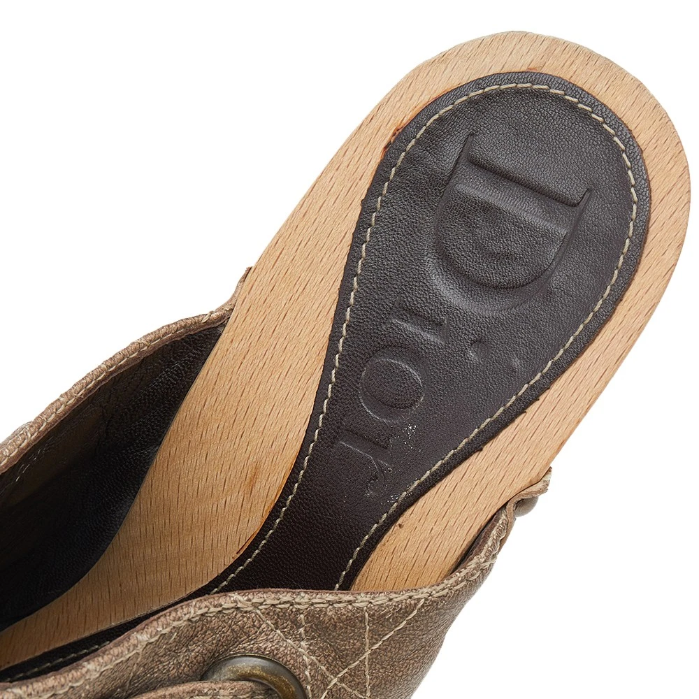These clog slides from Dior are trendy and easy to slip on. Made in Italy, they feature Cannage detailed leather vamps accented with a metal D charm. The pair is complete with studs on the midsoles and a set of high heels. This is one pair that speaks elegance in an effortless way.Certified by The Luxury Closet - This item has gone through a detailed authentication process overseen by our experts. We offer a lifetime guarantee of authenticity on all our items. Import duties, taxes and charges are not included in the item price. These charges are the buyers responsibility. Please check with your country’s customs office to determine what these additional cost will be prior to buying. Our eBay Store About Us Contact Us Add to Favorite Sellers Dior Brown Leather Clog Mules Size 39 $416.9 These clog slides from Dior are trendy and easy to slip on. Made in Italy, they feature Cannage detailed leather vamps accented with a metal D charm. The pair is complete with studs on the midsoles and a set of high heels. This is one pair that speaks elegance in an effortless way. Product Details Brand Color Brown Dimensions Material Leather Size 39 Outsole Width 8 cm Outsole Length 22 cm Heel Height 12 cm Includes The Luxury Closet Packaging Certified by The Luxury Closet This item has gone through a detailed authentication process overseen by our experts. We offer a lifetime guarantee of authenticity on all our items. How We Check The in-house team of experts at The Luxury Closet is highly trained to verify the authenticity and the condition of the luxury products. They ensure that only 100% authentic items are put on sale.The evaluation process is unique with its own mix of assessment criteria and differs according to the category. Each item is evaluated based on the following combination of hallmarks, hardware, stitching, symmetry, material, craftsmanship, stamping, codes, hologram stickers, and packaging. Our authenticators also check if the items have been modified or amended (e.g., aftermarket diamonds, replaced batteries, repaired bags, etc.) International Buyers Import duties, taxes and charges are not included in the item price. These charges are the buyers responsibility. Please check with your country’s customs office to determine what these additional cost will be prior to buying.