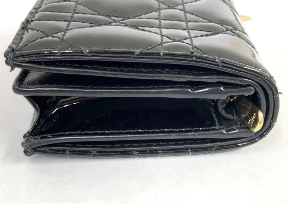 This Christian Dior wallet is absolutely stunning! The black enamel Canage design with the lotus motif adds such a luxurious touch. It's compact yet fits all my essentials perfectly—great for everyday use or nights out. The craftsmanship is impeccable, and it feels so elegant in hand. Definitely worth the splurge for a timeless piece!