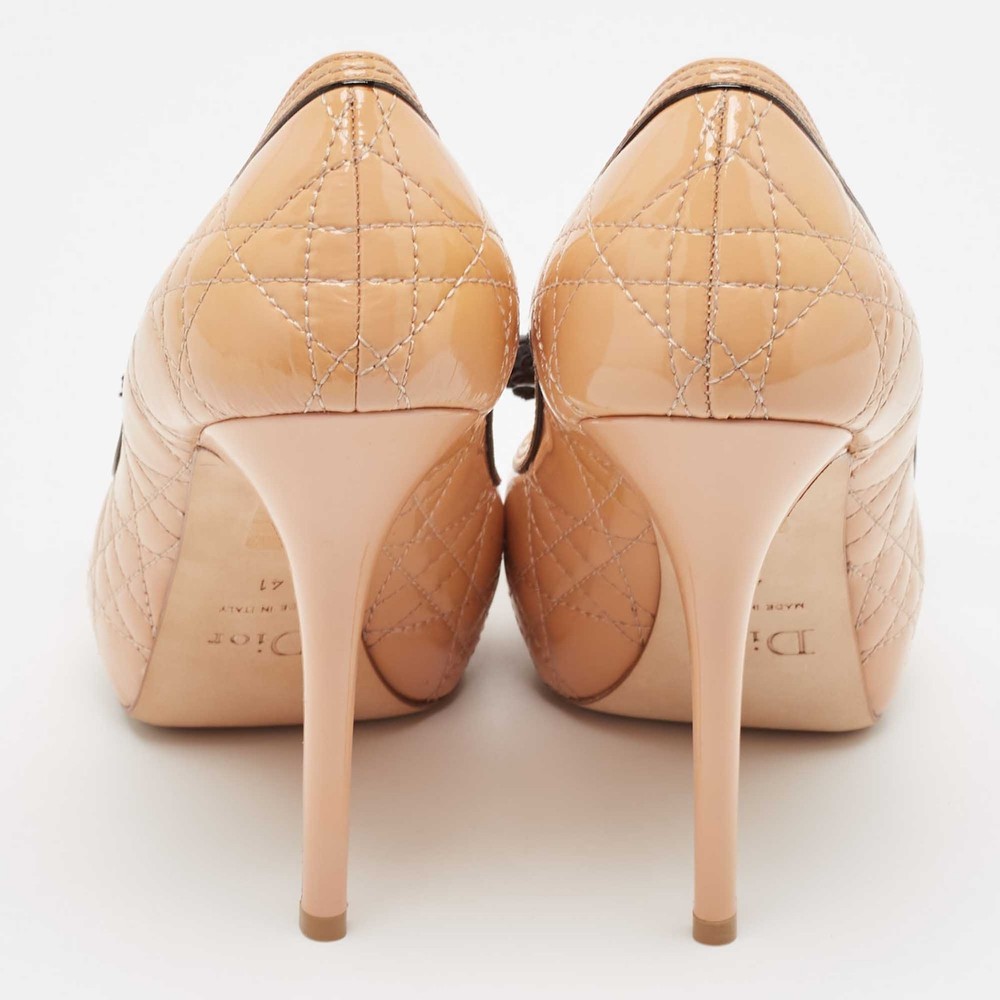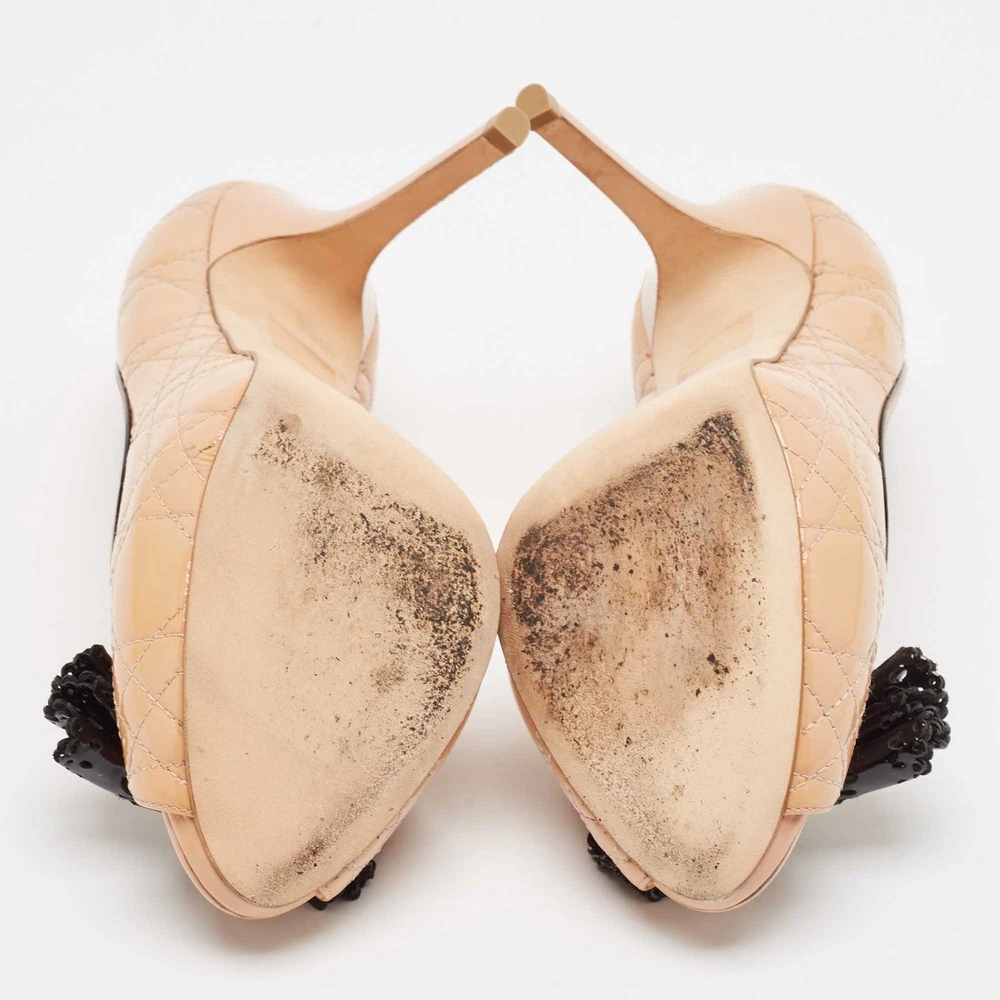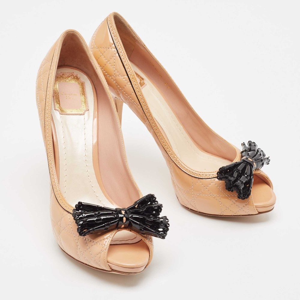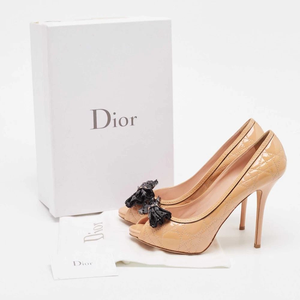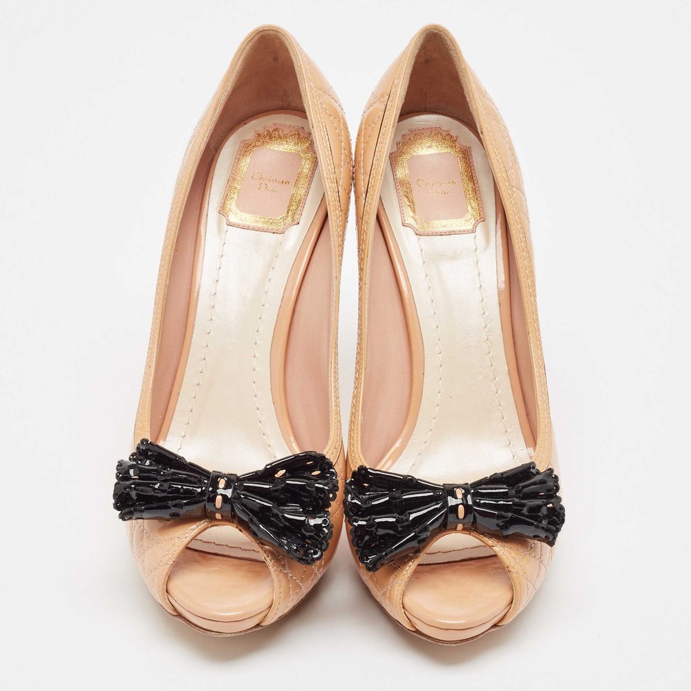 Dior Cannage Patent Peep-Toe Pumps in Beige Size 41 with Bow