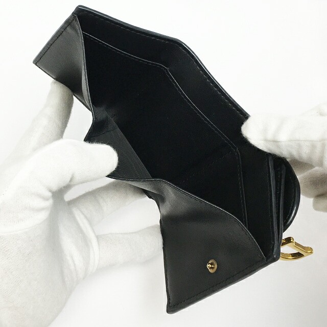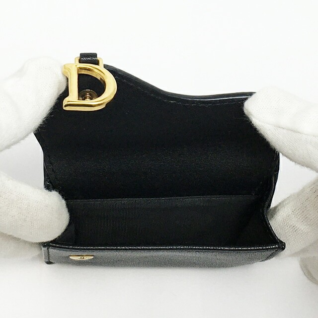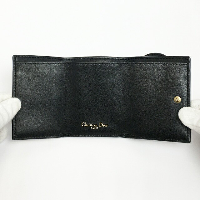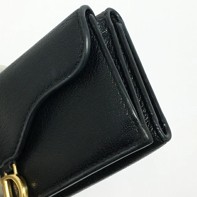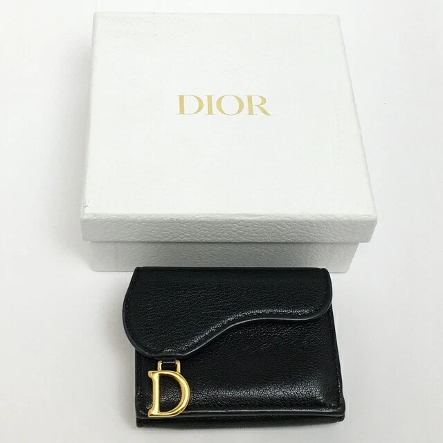 Dior Compact Wallet Black Preowned Luxury Leather Y0713