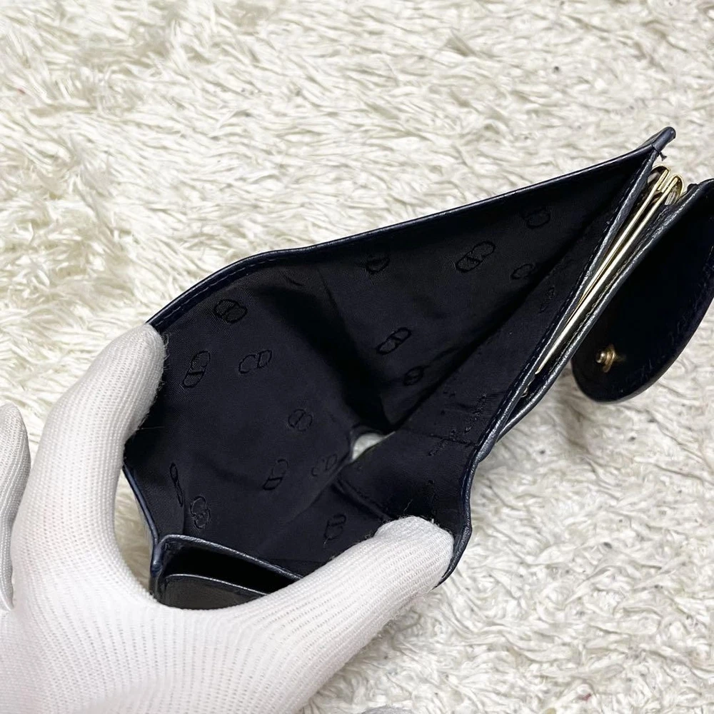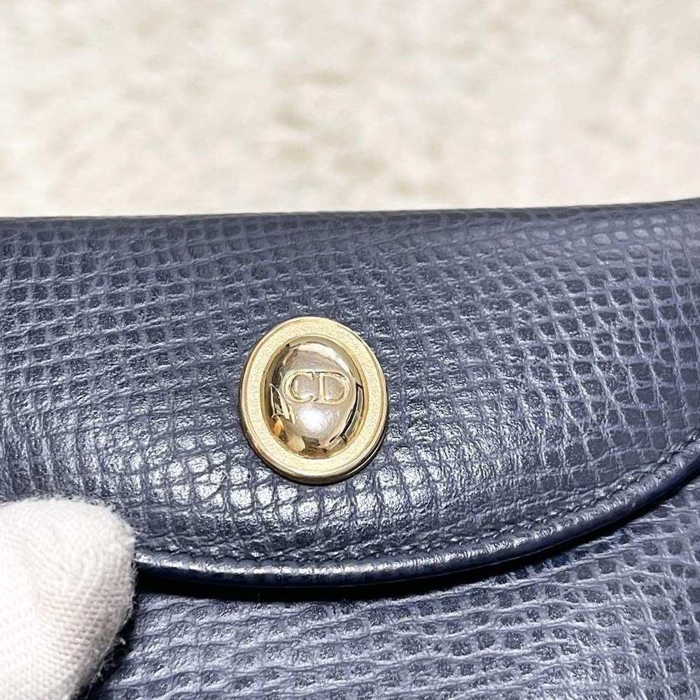 This Dior tri-fold wallet is a perfect blend of luxury and functionality. The dark blue leather looks sleek and sophisticated, while the gold hardware adds a touch of elegance. It has plenty of compartments to keep cards and cash organized without being bulky. The craftsmanship is top-notch, and it feels durable yet stylish. A great everyday accessory for anyone who appreciates high-end design!