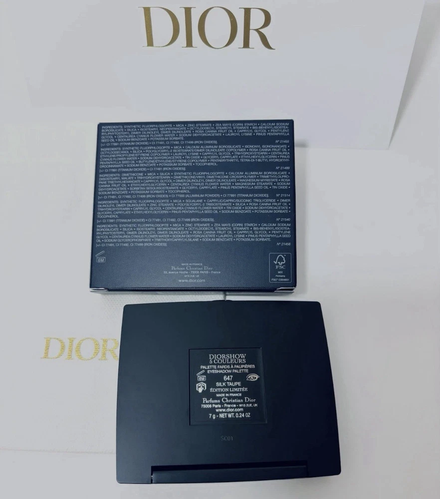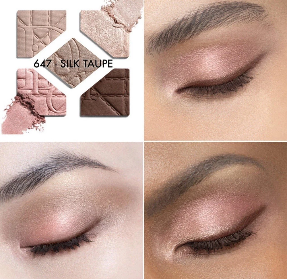 Diorshow 5 Couleurs - Limited Edition #647 Silk Taupe + Dior Pouch And Card. New 2025 Dior Summer Collection Authentic Limited Edition 2025 Includes original Dior pouch and card Diorshow 5 Couleurs delivers a creamy, comfortable and long-wearing texture that does not migrate into the crease of the eyelid. The intense color is available is matte, satin, shimmer, metallic and glitter finishes. The palettes, created by the Dior laboratories, contain a fine and creamy powder with a no-makeup feel. They provide immediate, long-lasting color intensity for all skin tones. The formula is composed of natural-origin pigments and infused with cornflower extract. For a natural eye makeup look: 1. Apply the medium shade on the entire mobile eyelid with the sponge applicator to open up the eyes. 2. Then add definition by applying the darkest shade along the lash line. 3. Highlight with the lightest shade beneath the brow arch and at the inner corner of the eye to widen the eyes.