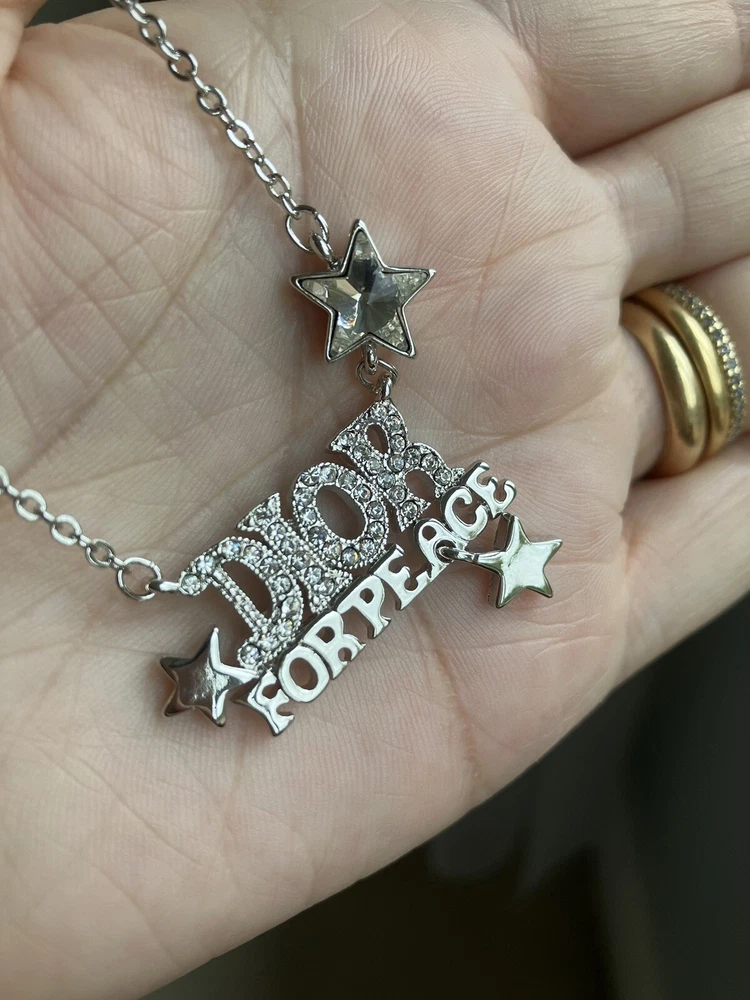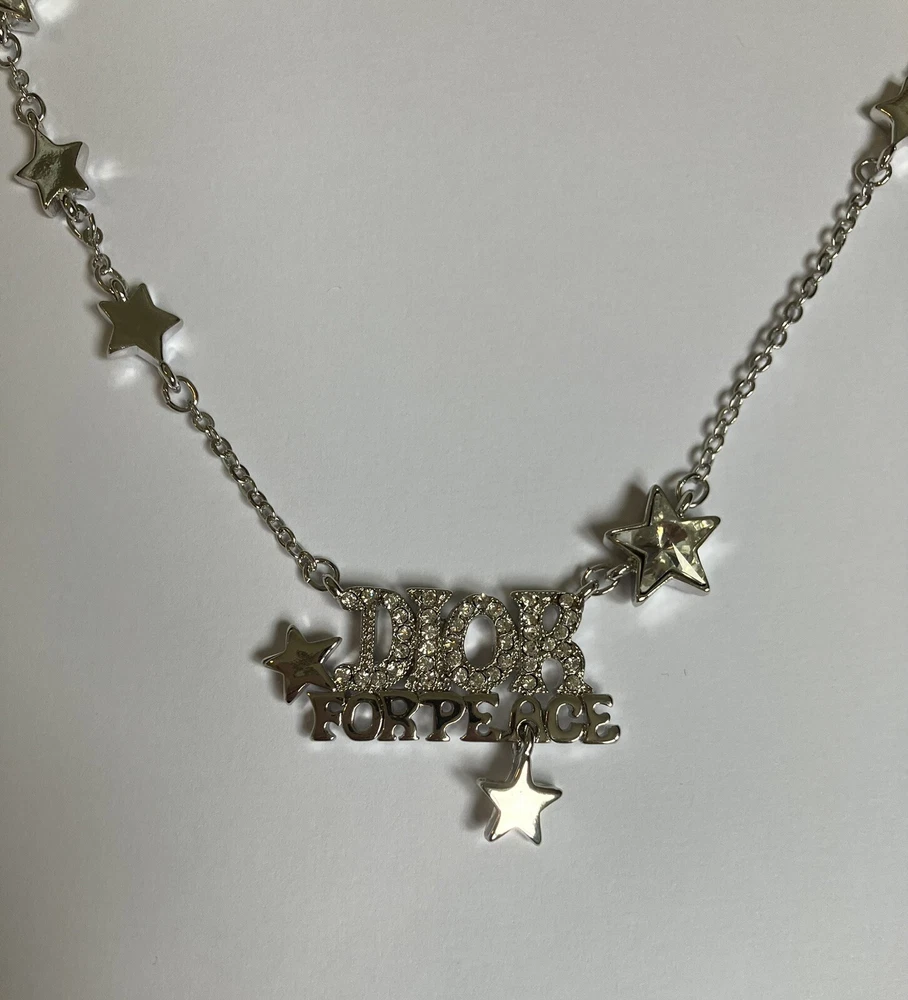 Dior for Peace necklace Silver tone costume jewellery Excellent condition as only used a few times Comes with Dior pouch as shown Feel free to ask any questions and see our other items