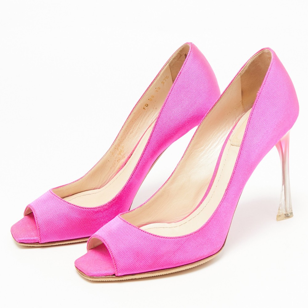 Become a modern day Cinderella with these Dior pumps. Designed in a vibrant fuchsia pink hue, this pair is designed with a canvas body and set on an eye catching flared heel with an ombre effect on it. Style with a solid dress or trousers for that head turning look.Certified by The Luxury Closet - This item has gone through a detailed authentication process overseen by our experts. We offer a lifetime guarantee of authenticity on all our items. Import duties, taxes and charges are not included in the item price. These charges are the buyers responsibility. Please check with your country’s customs office to determine what these additional cost will be prior to buying. Our eBay Store About Us Contact Us Add to Favorite Sellers Dior Fuchsia Pink Canvas Flare Heel Peep Toe Pumps Size 37.5 $174.9 Become a modern day Cinderella with these Dior pumps. Designed in a vibrant fuchsia pink hue, this pair is designed with a canvas body and set on an eye catching flared heel with an ombre effect on it. Style with a solid dress or trousers for that head turning look. Product Details Brand Color Pink Dimensions Material Fabric Size 37.5 Outsole Width 8 cm Outsole Length 23 cm Heel Height 10 cm Includes The Luxury Closet Packaging Certified by The Luxury Closet This item has gone through a detailed authentication process overseen by our experts. We offer a lifetime guarantee of authenticity on all our items. How We Check The in-house team of experts at The Luxury Closet is highly trained to verify the authenticity and the condition of the luxury products. They ensure that only 100% authentic items are put on sale.The evaluation process is unique with its own mix of assessment criteria and differs according to the category. Each item is evaluated based on the following combination of hallmarks, hardware, stitching, symmetry, material, craftsmanship, stamping, codes, hologram stickers, and packaging. Our authenticators also check if the items have been modified or amended (e.g., aftermarket diamonds, replaced batteries, repaired bags, etc.) International Buyers Import duties, taxes and charges are not included in the item price. These charges are the buyers responsibility. Please check with your country’s customs office to determine what these additional cost will be prior to buying.