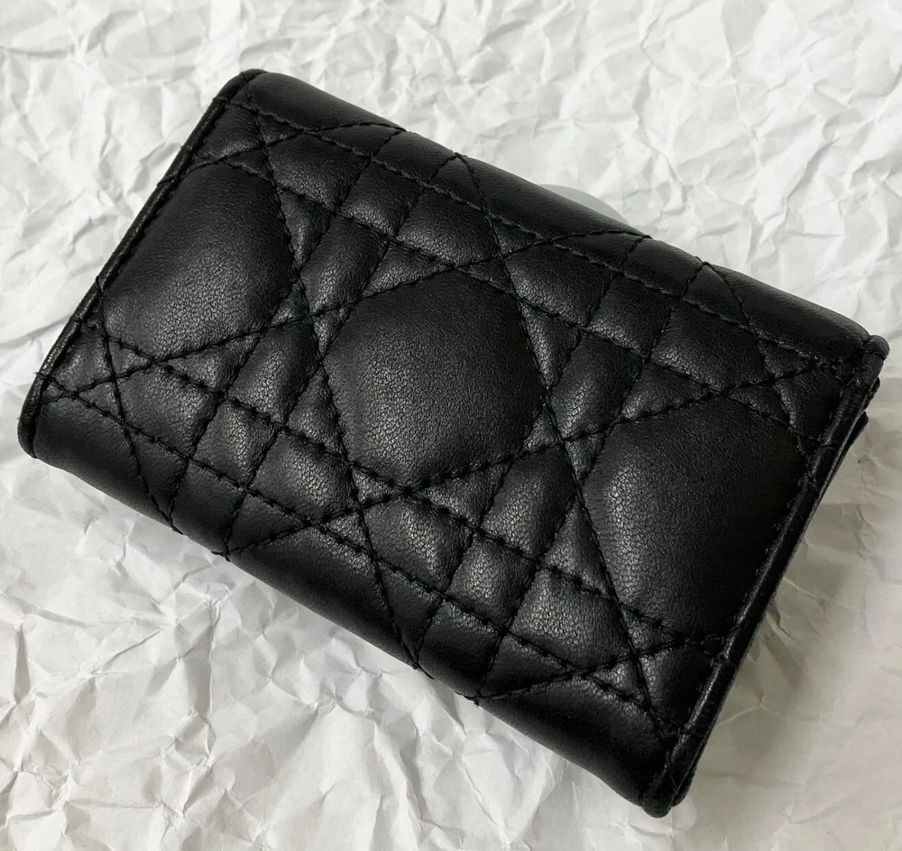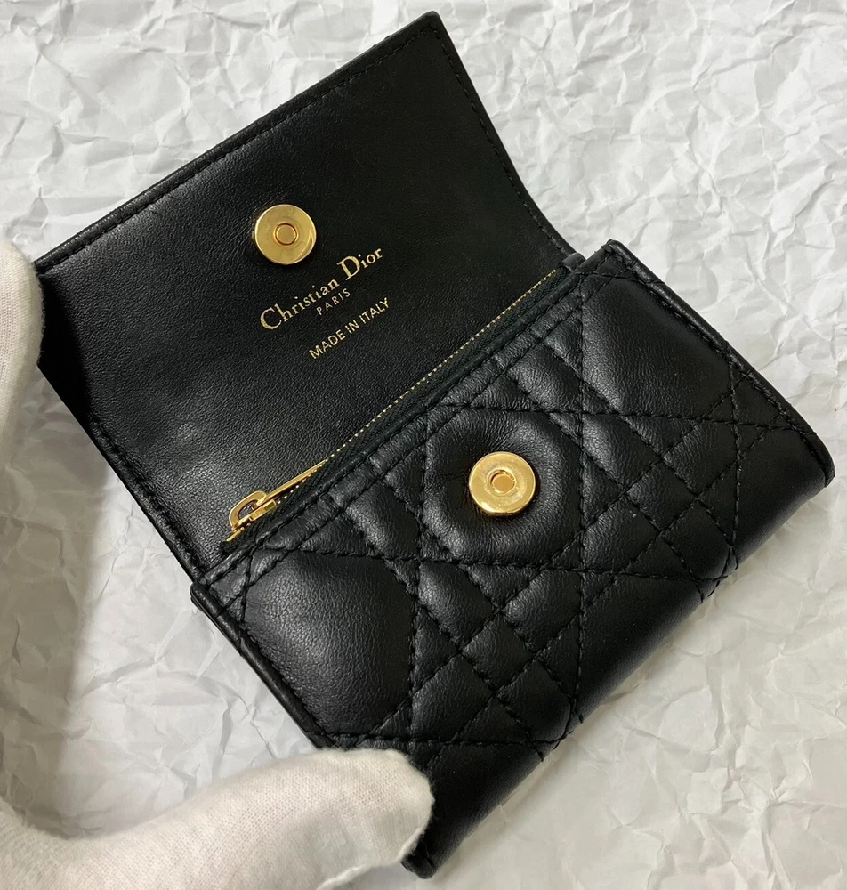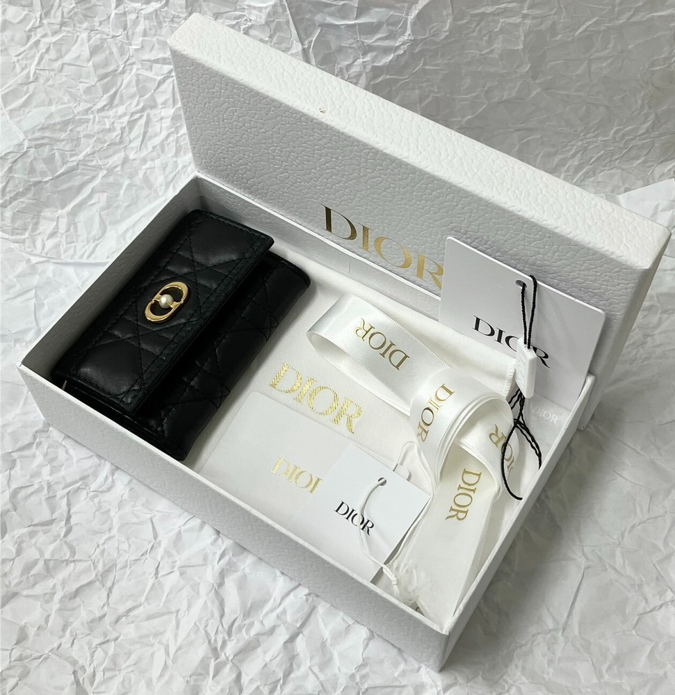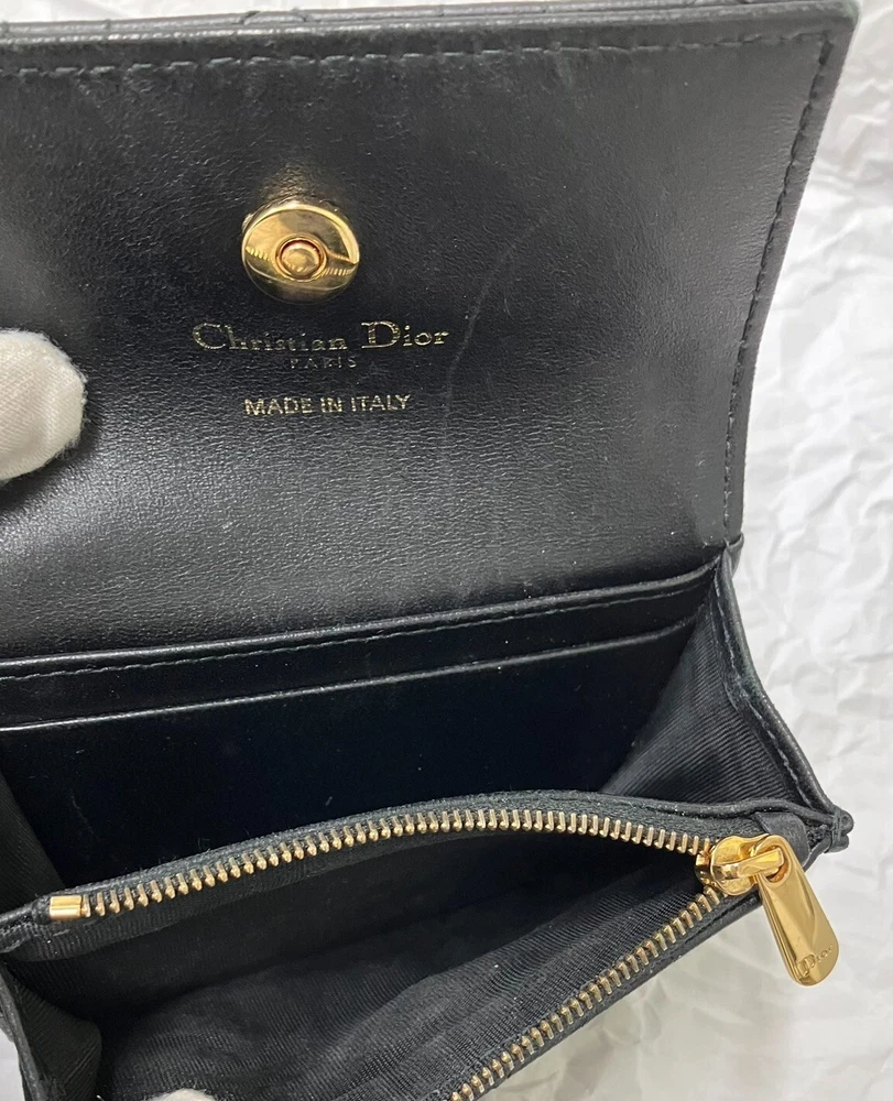 The inside of the bag is relatively clean and has only minor signs of wear and tear, few minor imperfections and little loss of shape. Size:W11xH7.5xD2.5cm 2 card pockets 1 gusset pocket 1 zipper coin purse Color: Black with gold hardware Materials: Leather (Cannage) and resin pearl Attachment: storage bag, box, paper tag, ribbon -------------------- This item has been authenticated as genuine by an authenticity agency. Secondhand dealer license No. 62111R061036 issued by Osaka Prefectural Public Safety Commission We are a fast and courteous transaction. I am a very happy customer. oh426070