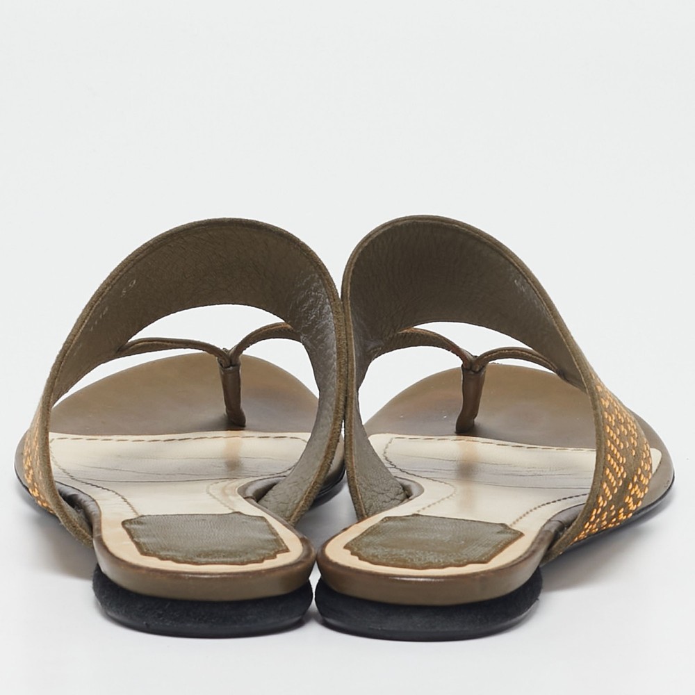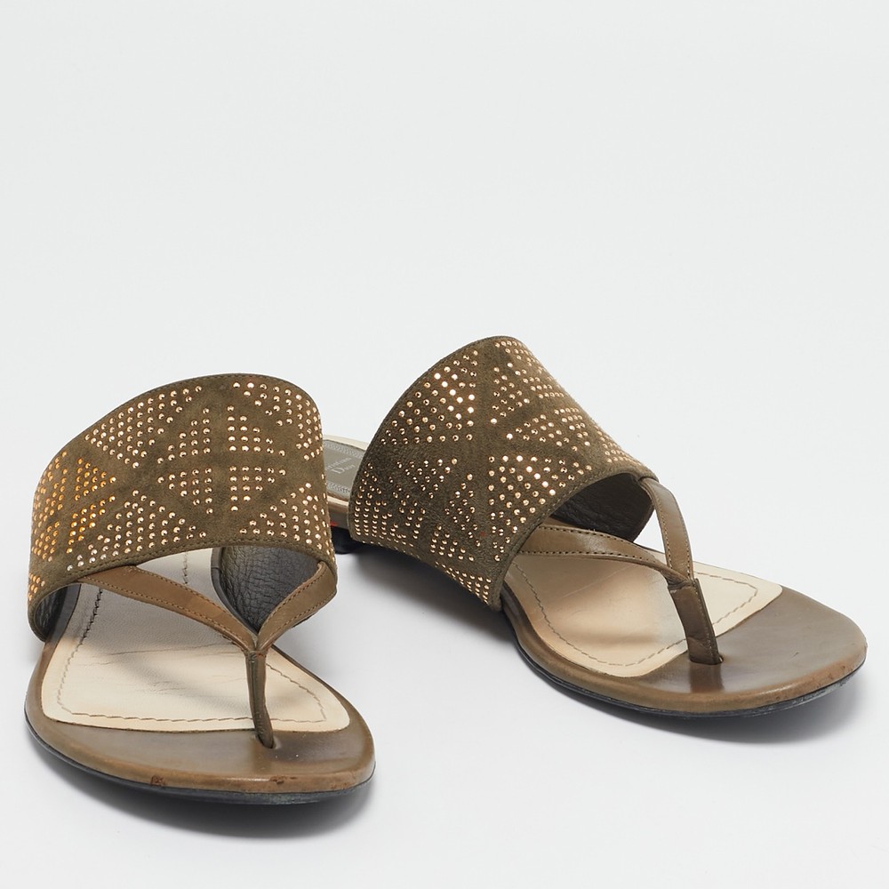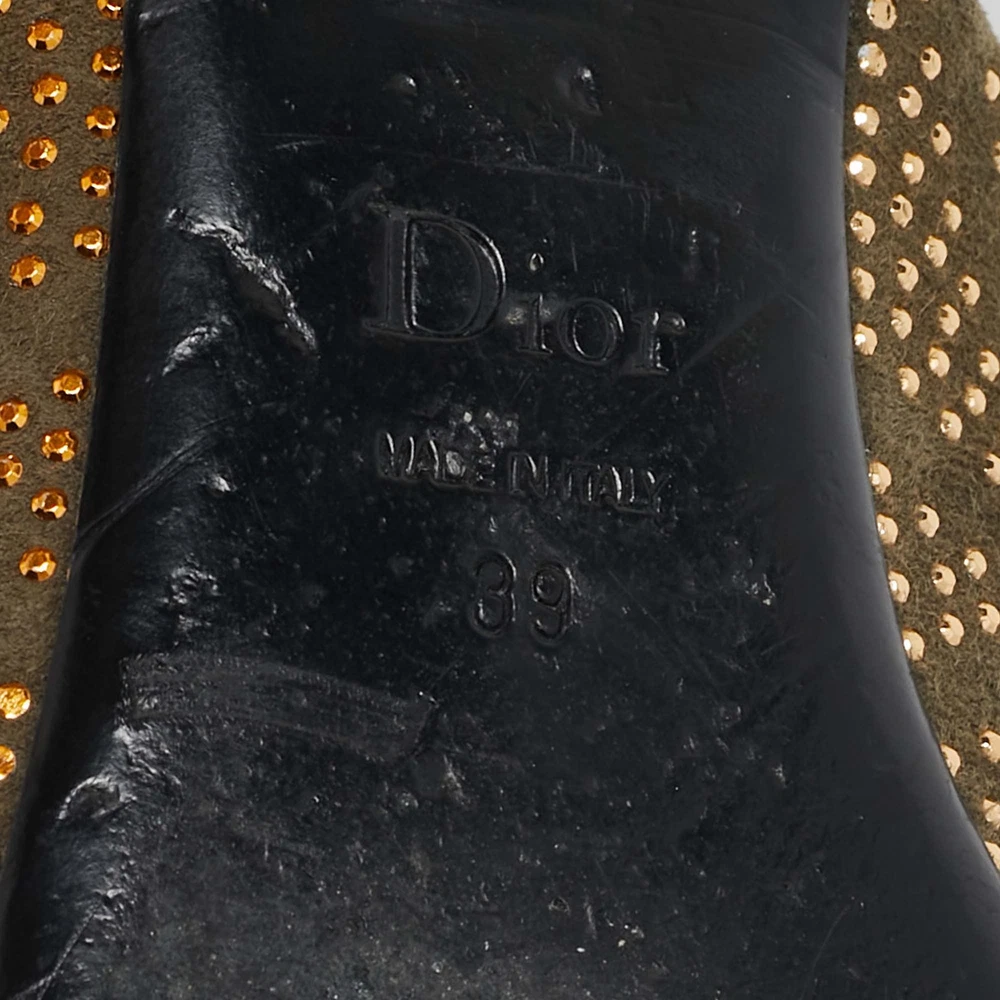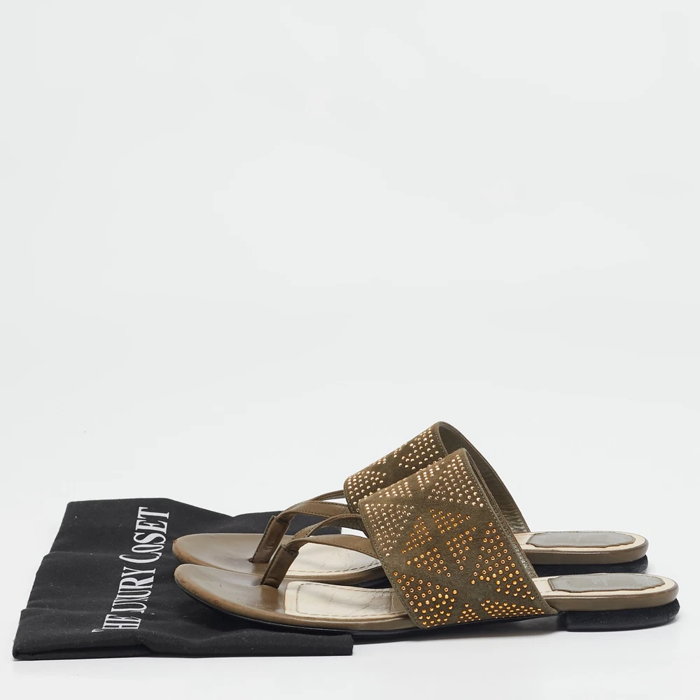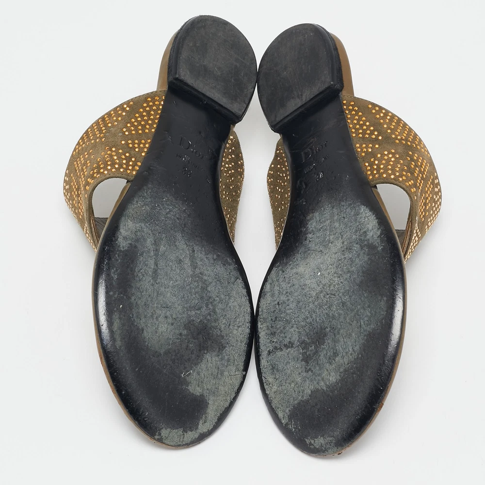 Discover elegance and comfort in these Dior green slip on sandals. Crafted in Italy, they seamlessly blend luxe leather and soft suede for a sophisticated experience.Certified by The Luxury Closet - This item has gone through a detailed authentication process overseen by our experts. We offer a lifetime guarantee of authenticity on all our items. Import duties, taxes and charges are not included in the item price. These charges are the buyers responsibility. Please check with your country’s customs office to determine what these additional cost will be prior to buying. Our eBay Store About Us Contact Us Add to Favorite Sellers Dior Green Leather and Suede Embellished Flat Sandals Size 39 $162.8 Discover elegance and comfort in these Dior green slip on sandals. Crafted in Italy, they seamlessly blend luxe leather and soft suede for a sophisticated experience. Product Details Brand Color Green Dimensions Material Leather, Suede Size 39 Outsole Width 9.5 cm Outsole Length 25.5 cm Heel Height Includes The Luxury Closet Packaging Certified by The Luxury Closet This item has gone through a detailed authentication process overseen by our experts. We offer a lifetime guarantee of authenticity on all our items. How We Check The in-house team of experts at The Luxury Closet is highly trained to verify the authenticity and the condition of the luxury products. They ensure that only 100% authentic items are put on sale.The evaluation process is unique with its own mix of assessment criteria and differs according to the category. Each item is evaluated based on the following combination of hallmarks, hardware, stitching, symmetry, material, craftsmanship, stamping, codes, hologram stickers, and packaging. Our authenticators also check if the items have been modified or amended (e.g., aftermarket diamonds, replaced batteries, repaired bags, etc.) International Buyers Import duties, taxes and charges are not included in the item price. These charges are the buyers responsibility. Please check with your country’s customs office to determine what these additional cost will be prior to buying.