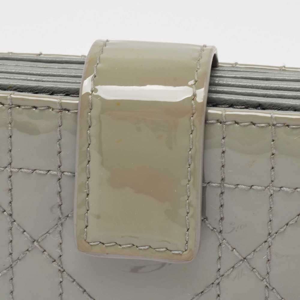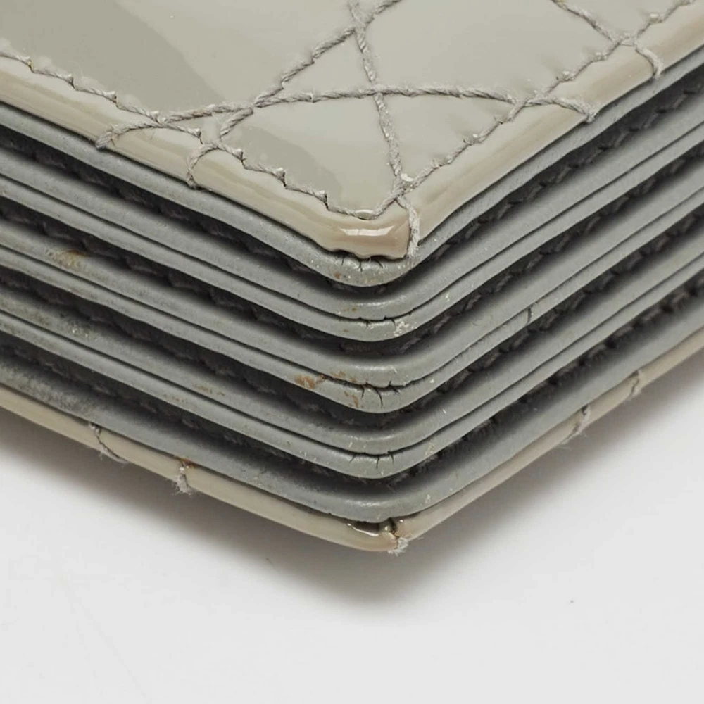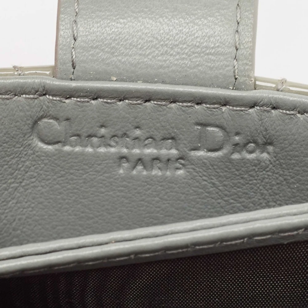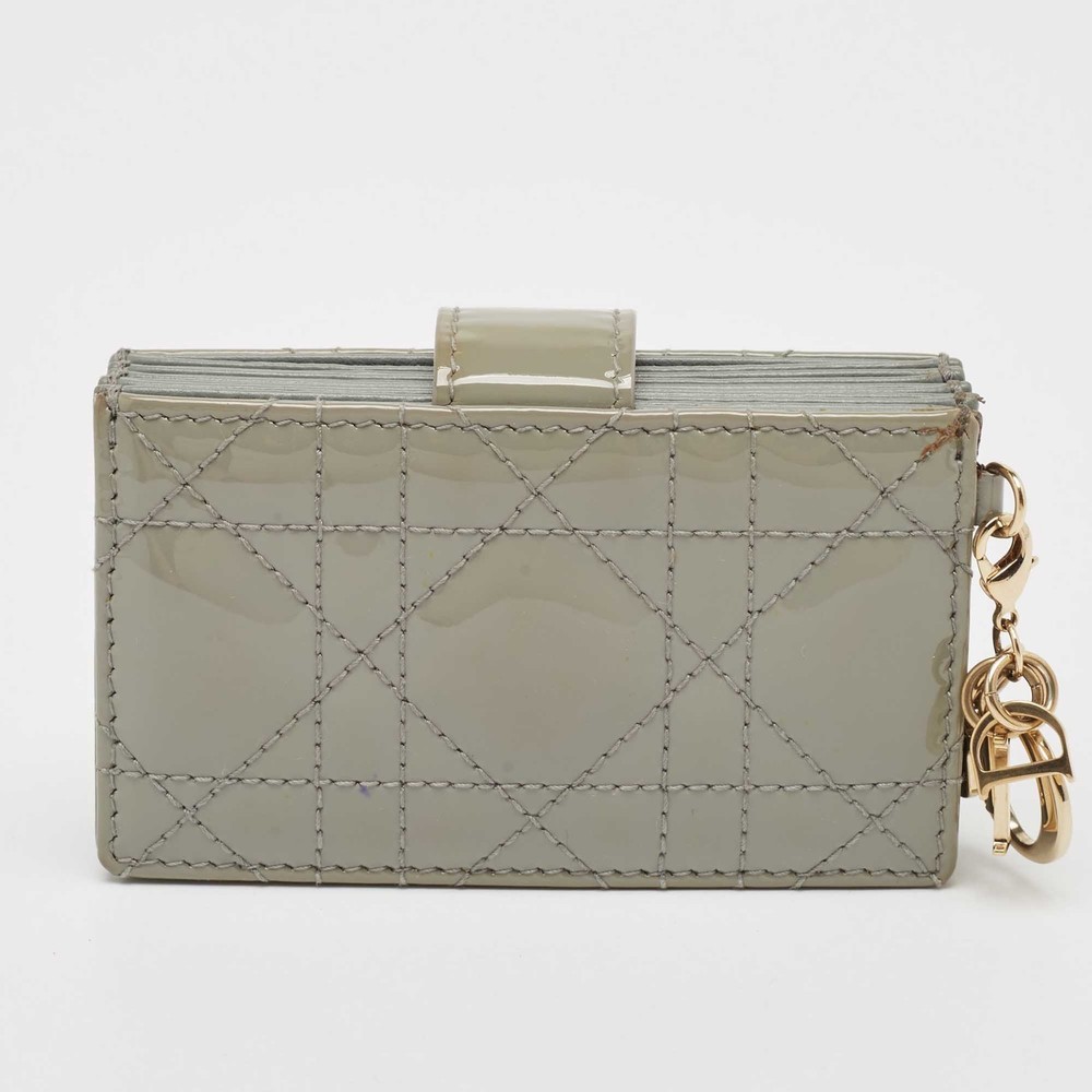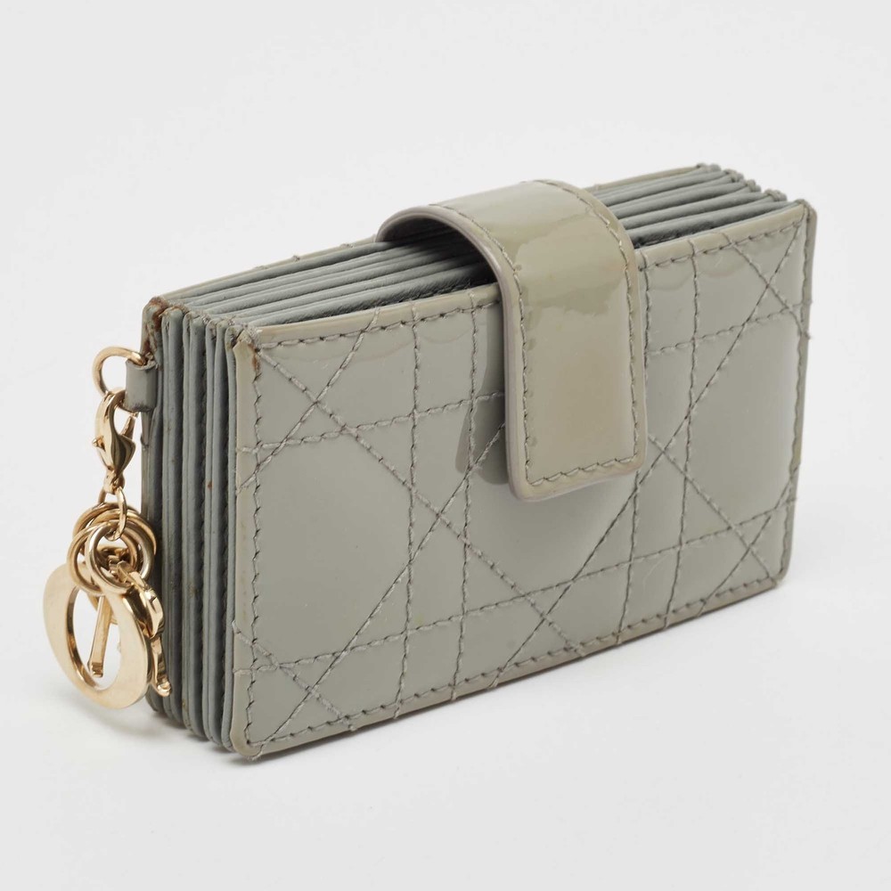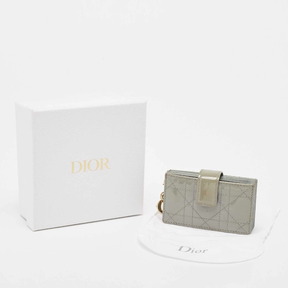 Crafted from patent leather, this Dior gusset card holder opens to reveal multiple compartments to carry your cards neatly. It also features the brands iconic quilt on the exterior. This grey piece is finished with gold tone hardware and DIOR charms.Certified by The Luxury Closet - This item has gone through a detailed authentication process overseen by our experts. We offer a lifetime guarantee of authenticity on all our items. Import duties, taxes and charges are not included in the item price. These charges are the buyers responsibility. Please check with your country’s customs office to determine what these additional cost will be prior to buying. Our eBay Store About Us Contact Us Add to Favorite Sellers Dior Grey Cannage Patent Leather Lady Dior 5 Gusset Card Holder $242 Crafted from patent leather, this Dior gusset card holder opens to reveal multiple compartments to carry your cards neatly. It also features the brands iconic quilt on the exterior. This grey piece is finished with gold tone hardware and DIOR charms. Product Details Brand Color Grey Dimensions Height: 6 cm, Width: 2 cm, Length: 10.5 cm Material Leather, Patent Leather Size Outsole Width Outsole Length Heel Height Includes Original Dustbag, Original Box Certified by The Luxury Closet This item has gone through a detailed authentication process overseen by our experts. We offer a lifetime guarantee of authenticity on all our items. How We Check The in-house team of experts at The Luxury Closet is highly trained to verify the authenticity and the condition of the luxury products. They ensure that only 100% authentic items are put on sale.The evaluation process is unique with its own mix of assessment criteria and differs according to the category. Each item is evaluated based on the following combination of hallmarks, hardware, stitching, symmetry, material, craftsmanship, stamping, codes, hologram stickers, and packaging. Our authenticators also check if the items have been modified or amended (e.g., aftermarket diamonds, replaced batteries, repaired bags, etc.) International Buyers Import duties, taxes and charges are not included in the item price. These charges are the buyers responsibility. Please check with your country’s customs office to determine what these additional cost will be prior to buying.