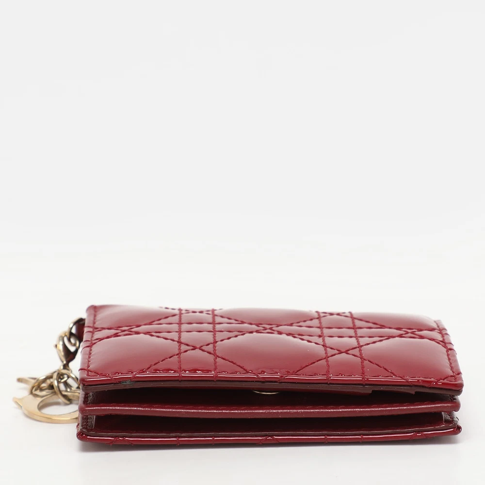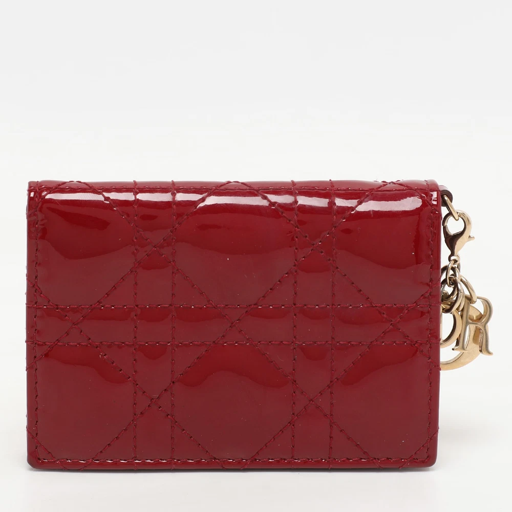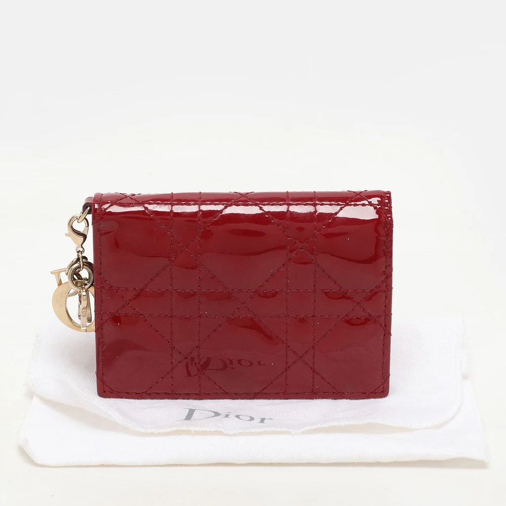 Indulge in the allure of luxury with this red card holder, crafted from patent leather. Designed with precision, this piece showcases timeless elegance.Certified by The Luxury Closet - This item has gone through a detailed authentication process overseen by our experts. We offer a lifetime guarantee of authenticity on all our items. Import duties, taxes and charges are not included in the item price. These charges are the buyers responsibility. Please check with your country’s customs office to determine what these additional cost will be prior to buying. Our eBay Store About Us Contact Us Add to Favorite Sellers Dior Red Patent Leather Lady Dior Card Holder $381.7 Indulge in the allure of luxury with this red card holder, crafted from patent leather. Designed with precision, this piece showcases timeless elegance. Product Details Brand Color Red Dimensions Height: 7.5 cm, Width: 2 cm, Length: 11 cm Material Patent Leather Size Outsole Width Outsole Length Heel Height Includes Original Dustbag Certified by The Luxury Closet This item has gone through a detailed authentication process overseen by our experts. We offer a lifetime guarantee of authenticity on all our items. How We Check The in-house team of experts at The Luxury Closet is highly trained to verify the authenticity and the condition of the luxury products. They ensure that only 100% authentic items are put on sale.The evaluation process is unique with its own mix of assessment criteria and differs according to the category. Each item is evaluated based on the following combination of hallmarks, hardware, stitching, symmetry, material, craftsmanship, stamping, codes, hologram stickers, and packaging. Our authenticators also check if the items have been modified or amended (e.g., aftermarket diamonds, replaced batteries, repaired bags, etc.) International Buyers Import duties, taxes and charges are not included in the item price. These charges are the buyers responsibility. Please check with your country’s customs office to determine what these additional cost will be prior to buying.