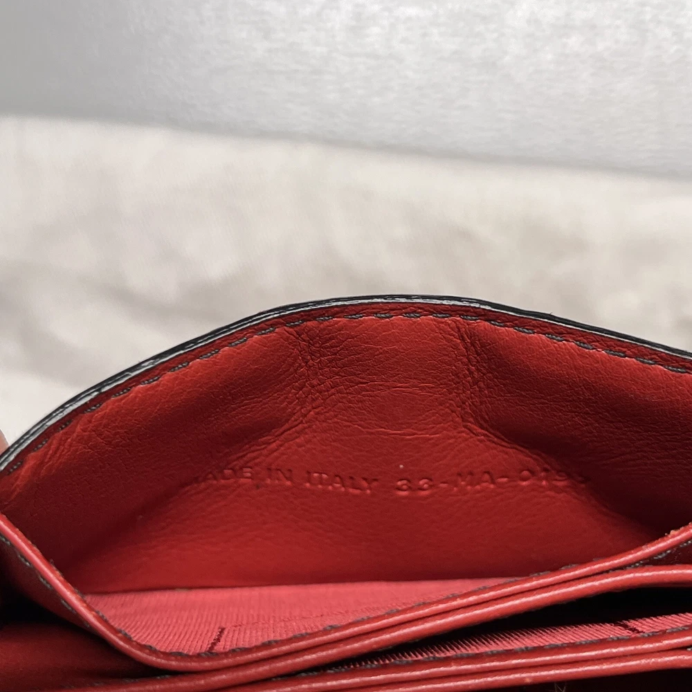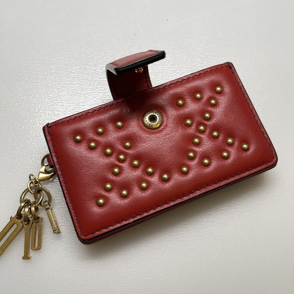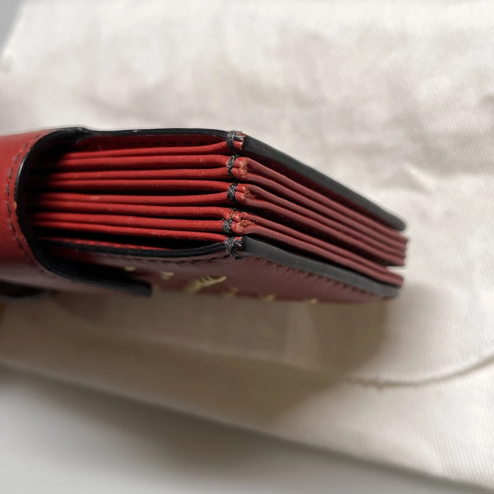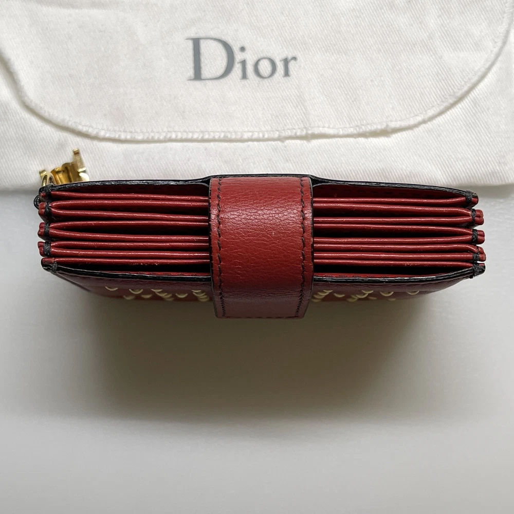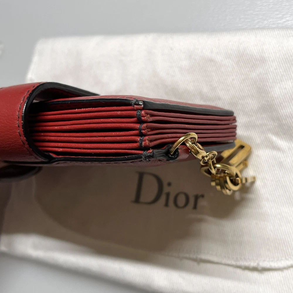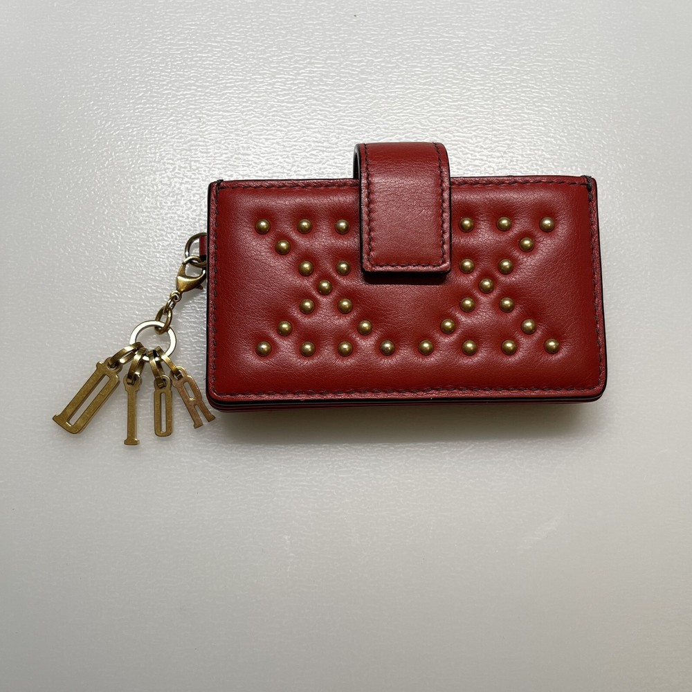 CHRISTIAN DIOR Lambskin Studded Cannage small Lady Dior 5 Card Holder wallet red Comes with tag and dust bag Has sign of use as shown Clean inside Overall still in very good condition Length: 4.25 in Height: 2.25 in Width: 0.75 in